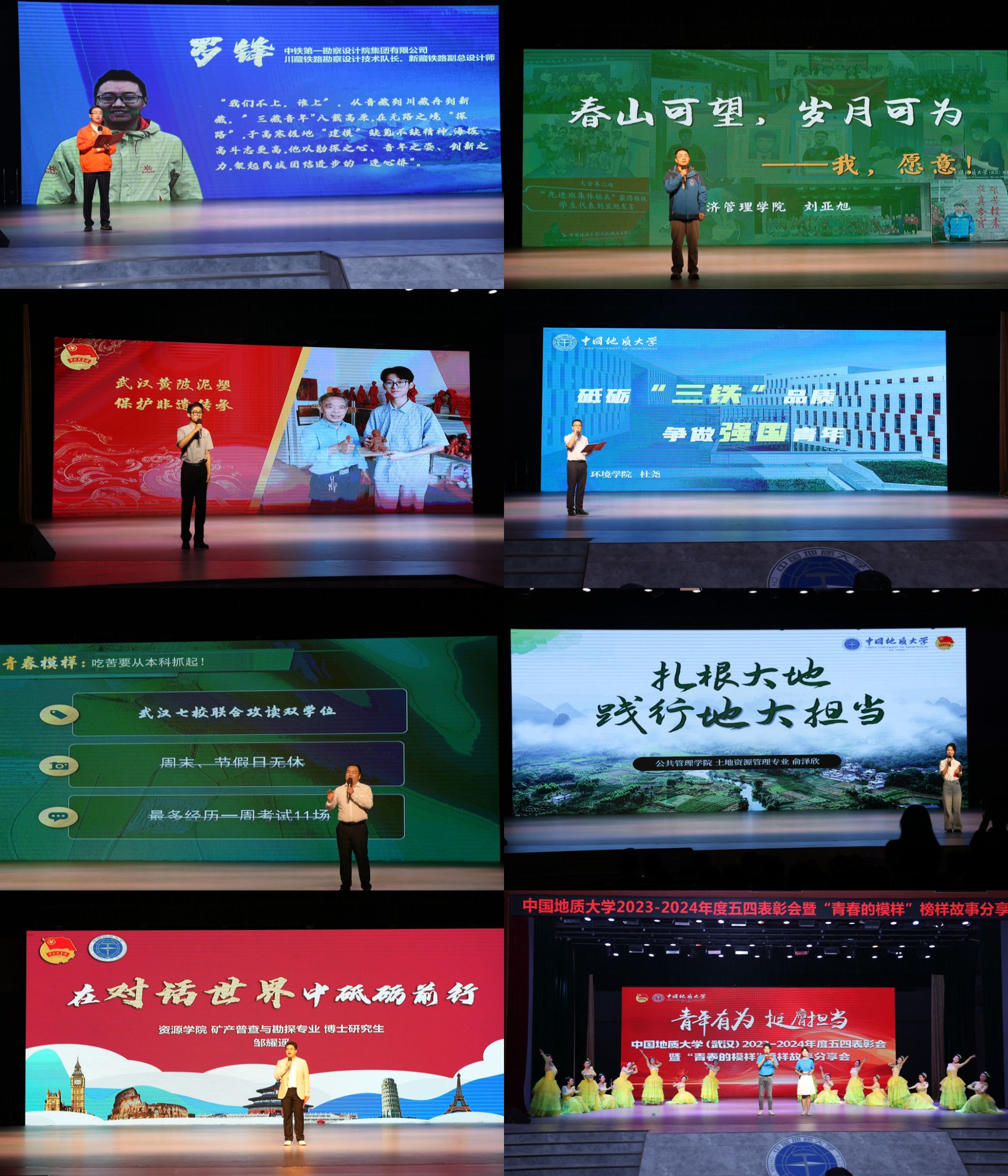 在“青春的模樣”榜樣故事分享會(huì)環(huán)節(jié),校友羅鋒,團(tuán)十九大代表、十大標(biāo)兵研究生、經(jīng)濟(jì)管理學(xué)院碩士生劉亞旭,全國(guó)“青馬工程”高校班學(xué)員、十大標(biāo)兵學(xué)生、工程學(xué)院本科生陳城,學(xué)校第16屆“十大杰出青年”、環(huán)境學(xué)院杜堯教授,十大標(biāo)兵研究生、材料與化學(xué)學(xué)院博士生車華超,十大標(biāo)兵學(xué)生、公共管理學(xué)院本科生俞澤欣,資源學(xué)院博士生鄒耀遙等7位青年師生代表圍繞“有理想、敢擔(dān)當(dāng)、能吃苦、肯奮斗、勇攀登”等主題,聚焦不同青年群體在學(xué)習(xí)工作中的幸福點(diǎn)滴,分享地大青年校友、師生強(qiáng)國(guó)擔(dān)當(dāng)?shù)那啻簥^進(jìn)故事。