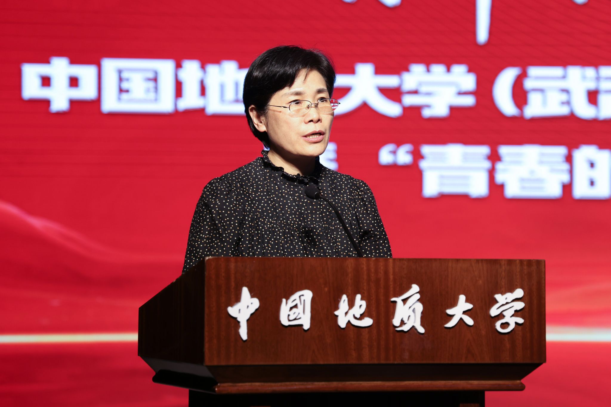 黃曉玫講話。她表示,黨的十八大以來(lái),習(xí)近平總書記高度重視青年工作,圍繞黨的青年工作發(fā)表一系列重要論述,形成了習(xí)近平總書記關(guān)于青年工作的重要思想,為做好新時(shí)代黨的青年工作提供了根本遵循。今年的五四青年節(jié),習(xí)近平總書記深情寄語(yǔ)新時(shí)代青年,飽含著對(duì)新時(shí)代青年在推進(jìn)強(qiáng)國(guó)建設(shè)、民族復(fù)興偉業(yè)中建功立業(yè)的殷切期待。她向獲得表彰的同學(xué)表示祝賀,并向全體地大青年師生致以問候。她回憶了一代代地大青年傳承紅色基因,投身探秘月球、開發(fā)礦藏、大洋科考、基層治理、逐夢(mèng)奧運(yùn),在祖國(guó)和人民需要的地方辛勤耕耘的故事。她希望地大青年從先驅(qū)前輩和身邊青年榜樣的奮斗歷程中汲取智慧、提振信心、增添力量,胸懷國(guó)之大者,做報(bào)國(guó)為民的有志青年;堅(jiān)持全面發(fā)展,做敢闖能創(chuàng)的擔(dān)當(dāng)青年;追求建功有我,做永久奮斗的有為青年。