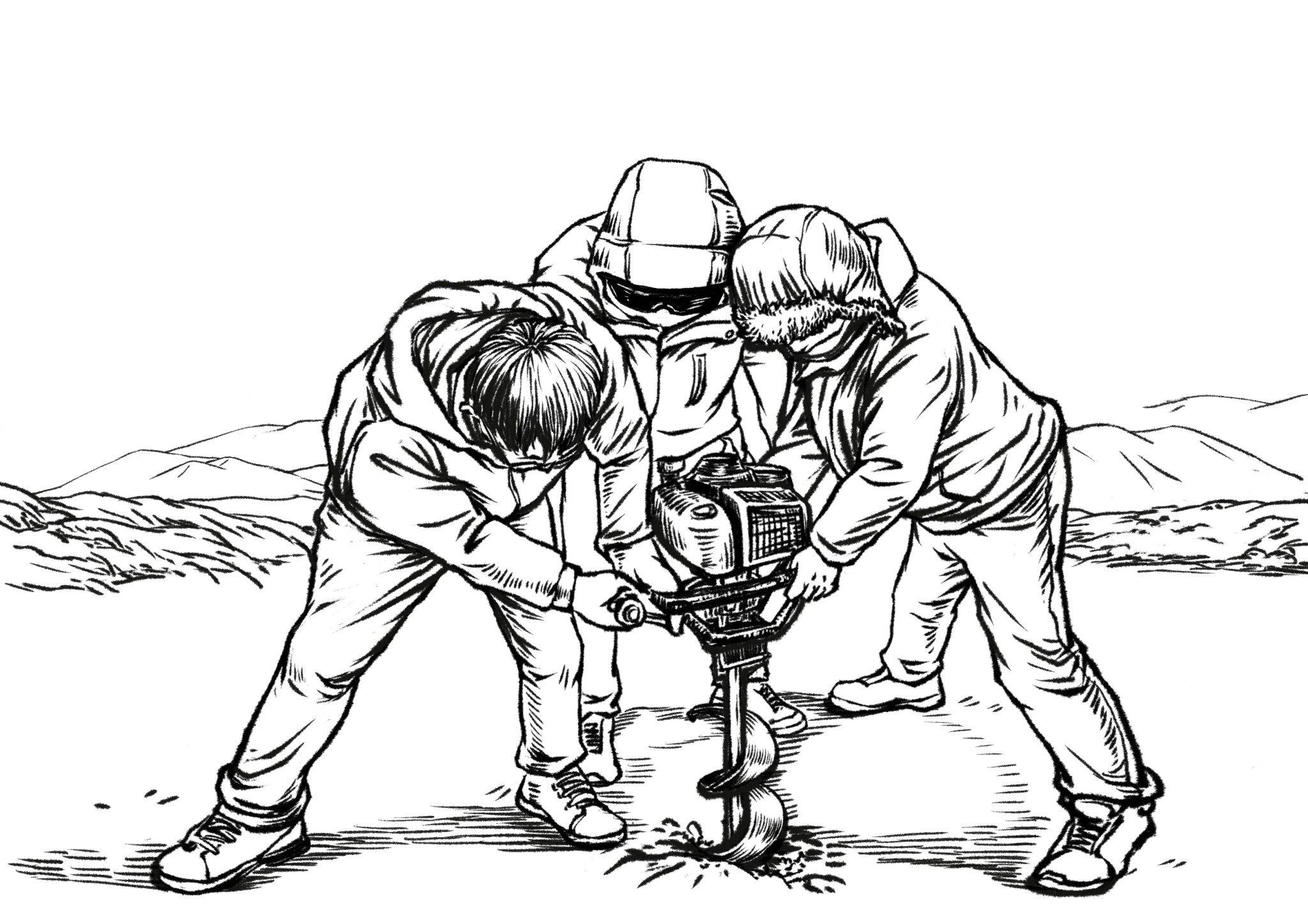 為了真實描繪野外地質教學與科考,創作中搜集了上千張的照片作為參考。“繪本創作不是簡單地把照片原原本本地畫出來,而是要對圖像進行提煉、取舍,然后根據敘事的要求進行針對性的描繪,最后實現文圖交融。”陳華文說。