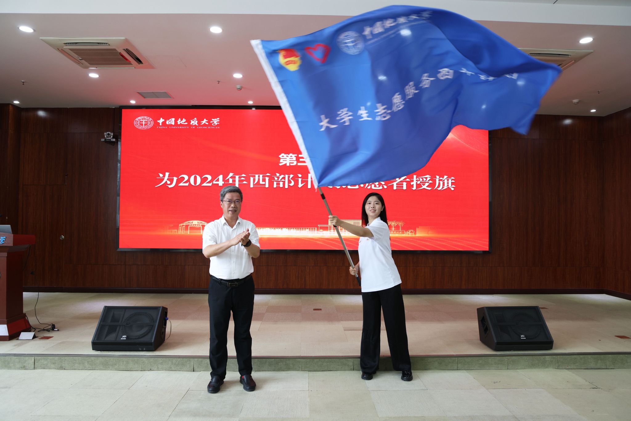 在出征儀式上,劉杰為第26屆研究生支教團授旗,王華為2024年西部計劃志愿者授旗。11位研究生支教團成員、20名西部計劃志愿者將奔赴新疆維吾爾自治區、新疆生產建設兵團、西藏自治區、云南楚雄、湖北巴東等12個省(自治區、直轄市)開展志愿服務和支教活動。