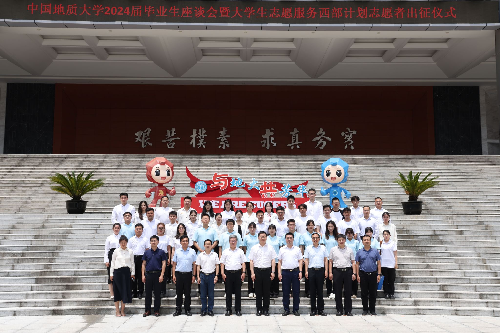 地大新聞網訊 (通訊員 楊書睿 周汝霖 郭小玉 攝影 孫彥欽)6月21日,我校2024屆畢業生座談會暨大學生志愿服務西部計劃志愿者出征儀式在東區教學綜合樓A708舉行。校黨委書記劉杰,副校長王華,相關管理與服務單位負責人、2024屆優秀畢業生代表、西部計劃志愿者及第26屆研究生支教團參加會議。校團委書記朱丹主持會議。