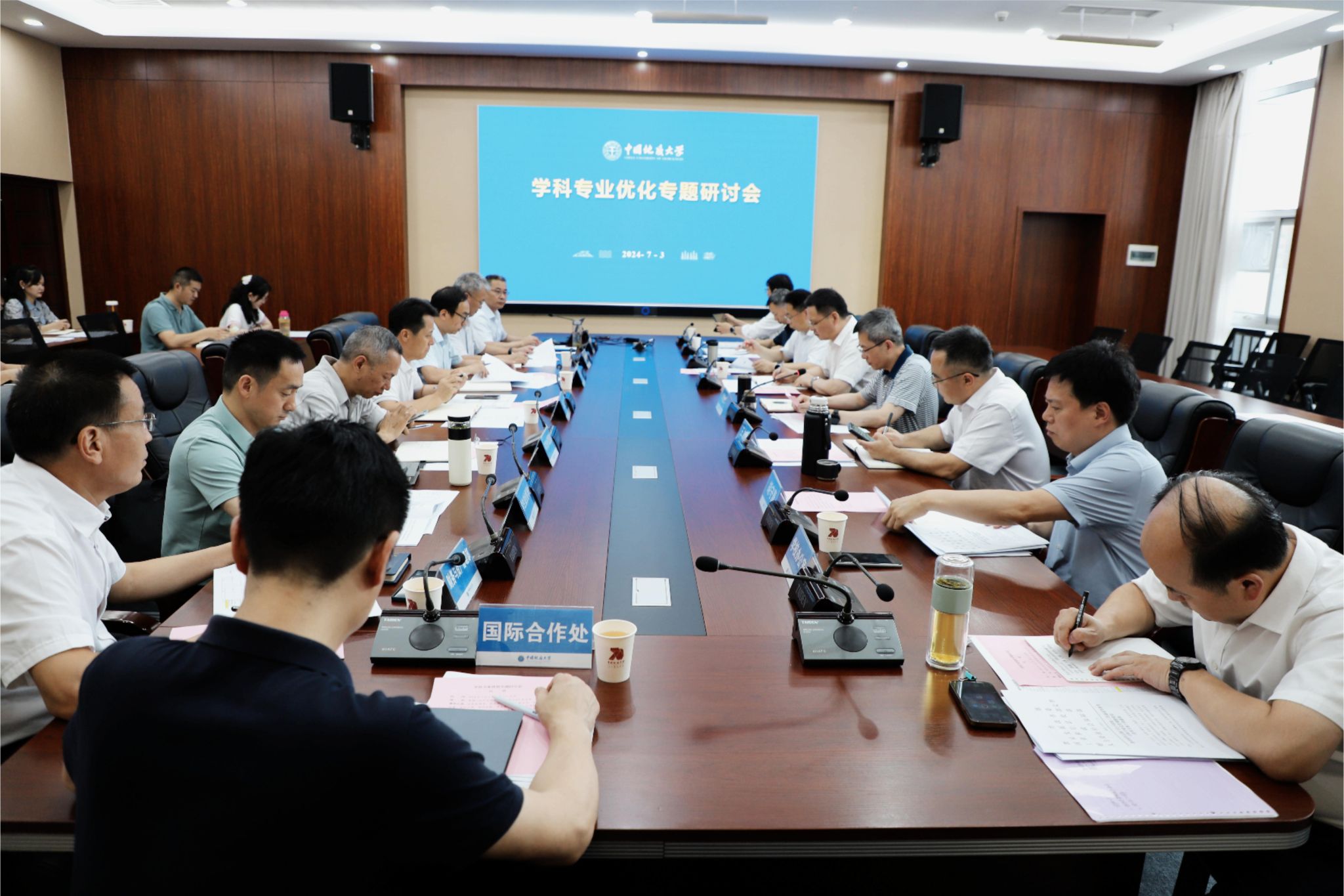 發展規劃與學科建設處處長徐紹紅圍繞相關政策和文件要求、我校學科專業現狀與問題、開展學科專業優化調整的思考與建議作專題匯報。本科生院常務副院長周建偉、研究生院常務副院長趙葵東分別就本科專業、研究生學位點優化調整思路作重點發言。