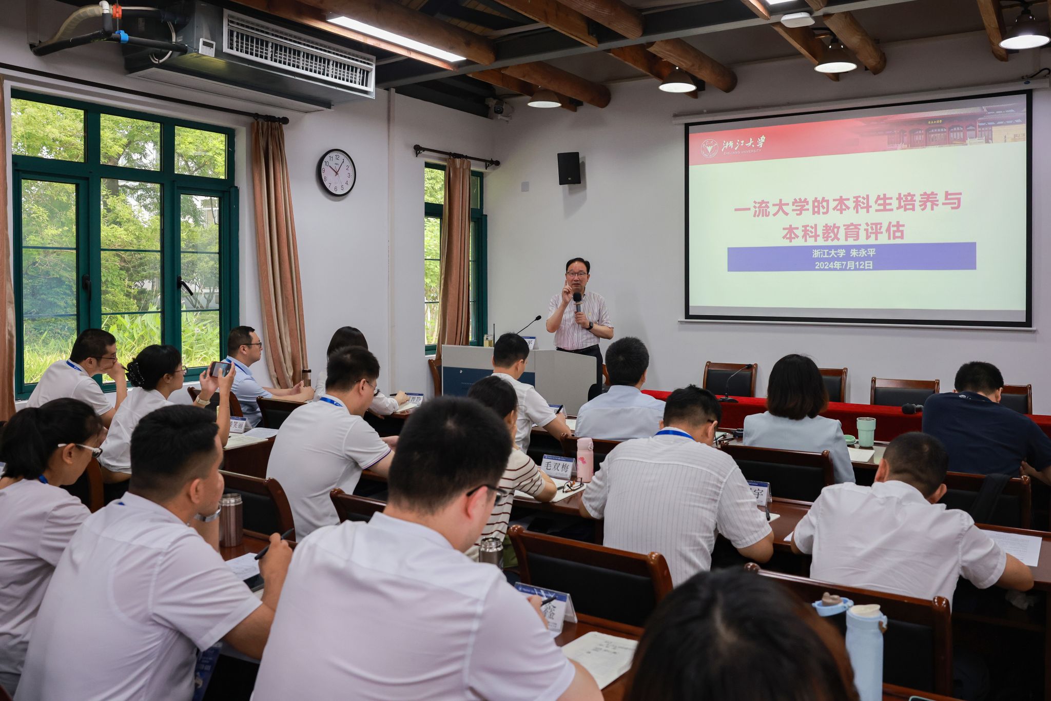 開班第一課,由浙江大學朱永平教授帶來題為《一流大學的本科生培養與本科教育評估》的專題報告。朱永平教授從“人工智能時代,大學的存在價值和教師的作用發揮”這一話題引入,探討如何運用人工智能更好地推動高校人才培養工作。他從一流大學是“剛需”、學科建設是“龍頭”、專業建設是“王道”、教學評估是“抓手”、人才隊伍是“保障”五個方面進行闡述,突出強調了辦好一流大學的重要性和必要性,如何做好學科建設、專業建設和本科教育評估等,幫助參訓學員對做好高校人才培養工作產生更加深刻的認識和思考。