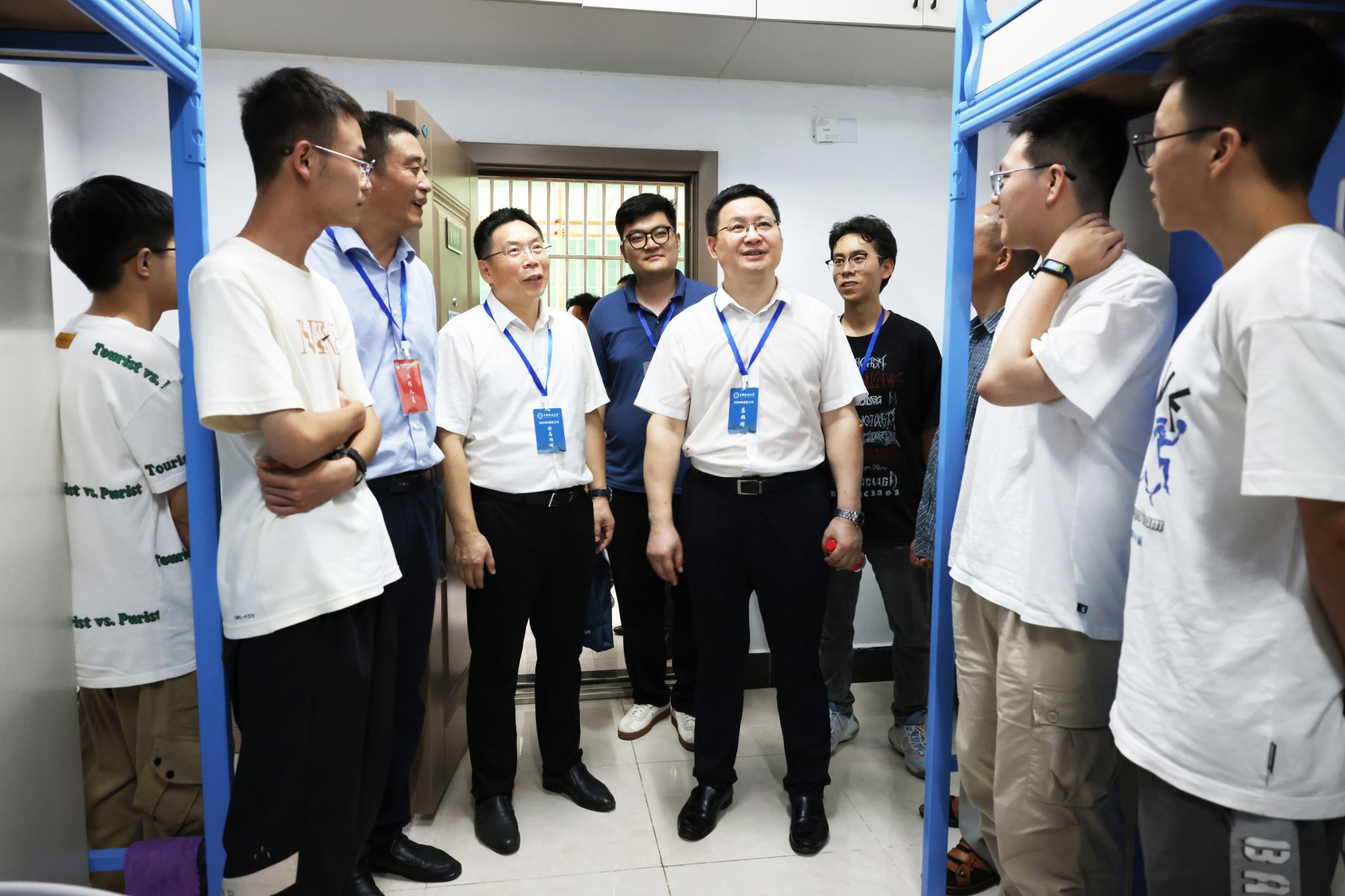 9月2日、9月3日下午,校領導劉杰、王林清、唐忠陽、王甫、王力哲,黨委常委、組織部部長陳文武,校長助理蔣少涌,分別到南望山校區、未來城校區迎新點和新生宿舍走訪,與新生和家長們親切交流,了解大家飲食、生活、興趣愛好以及到校后的感受。他們代表學校歡迎新生們,表示學校將盡最大努力為同學們提供良好的學習生活環境,請家長們放心,希望同學們保持青春朝氣,好好珍惜來之不易的學習機會,練就過硬本領,在地大追逐并實現自己的夢想。