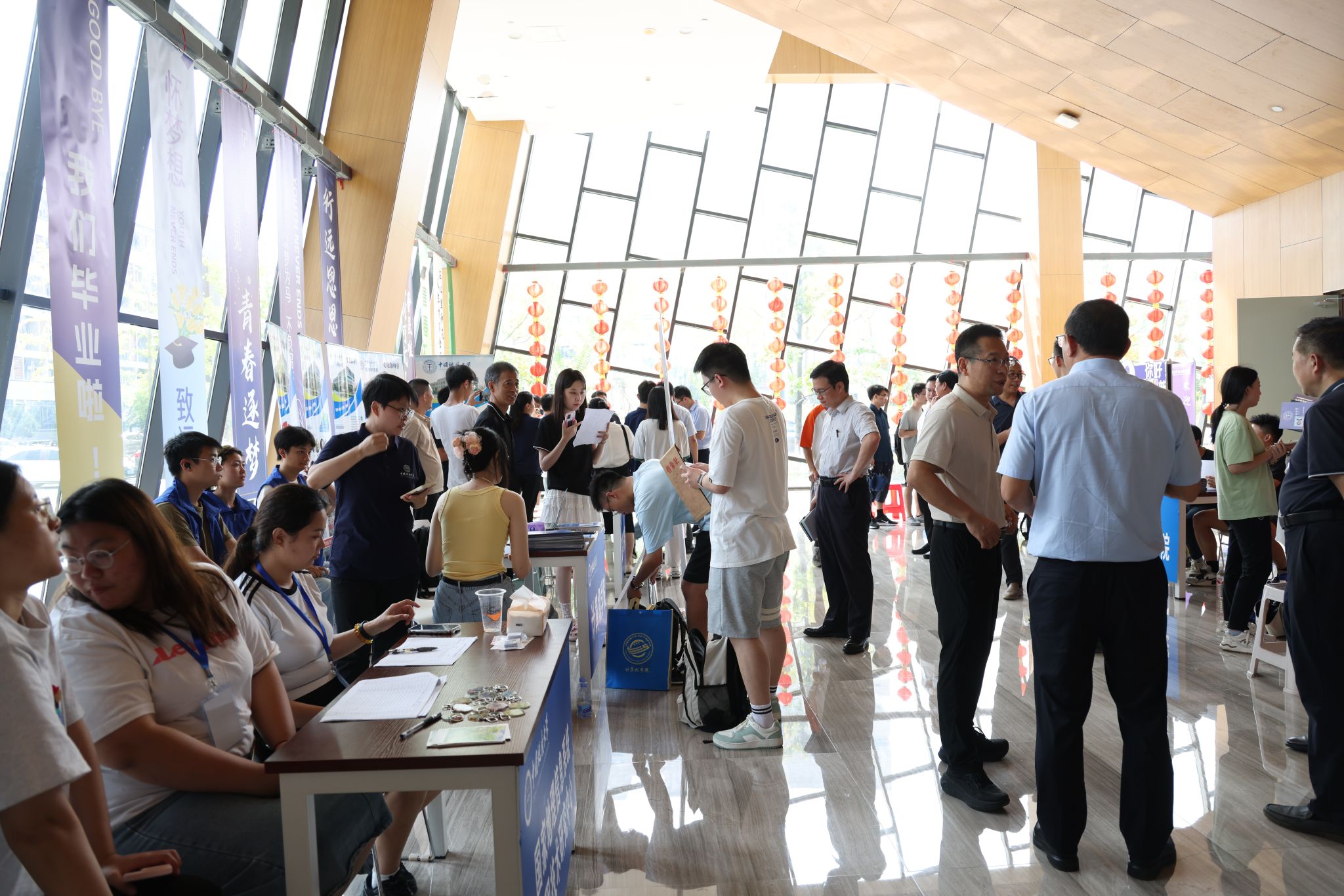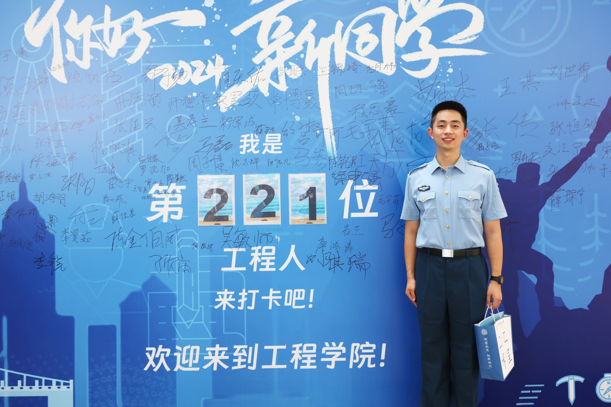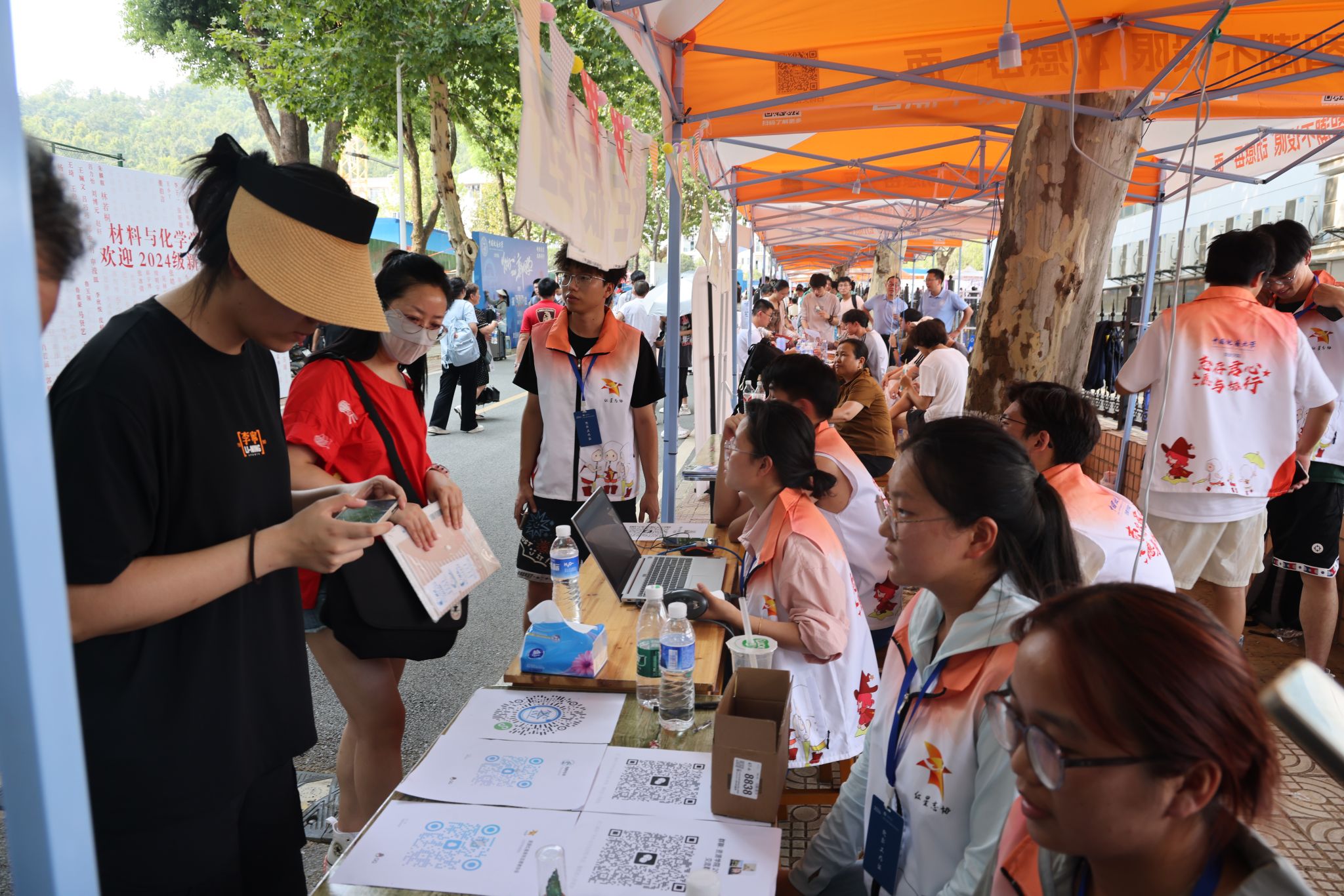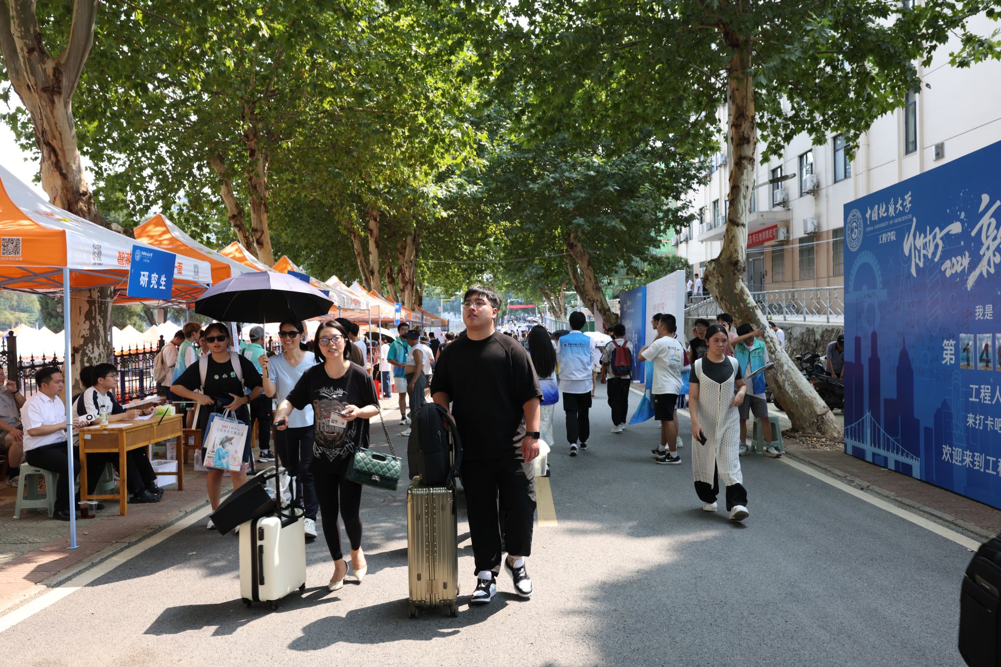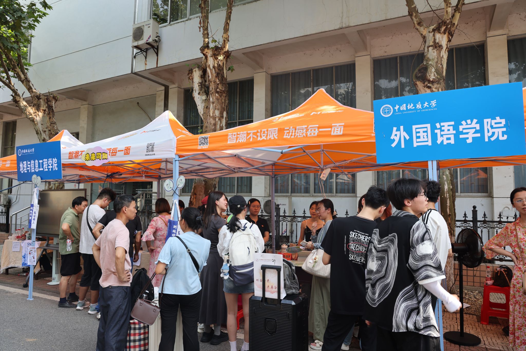 大轉盤、簽名墻、各式小禮品……雖烈日炎炎,但空氣中氤氳著歡樂的氣息。微笑、擁抱、定格,在各學院的迎新報到點,大家把美好記憶珍藏。