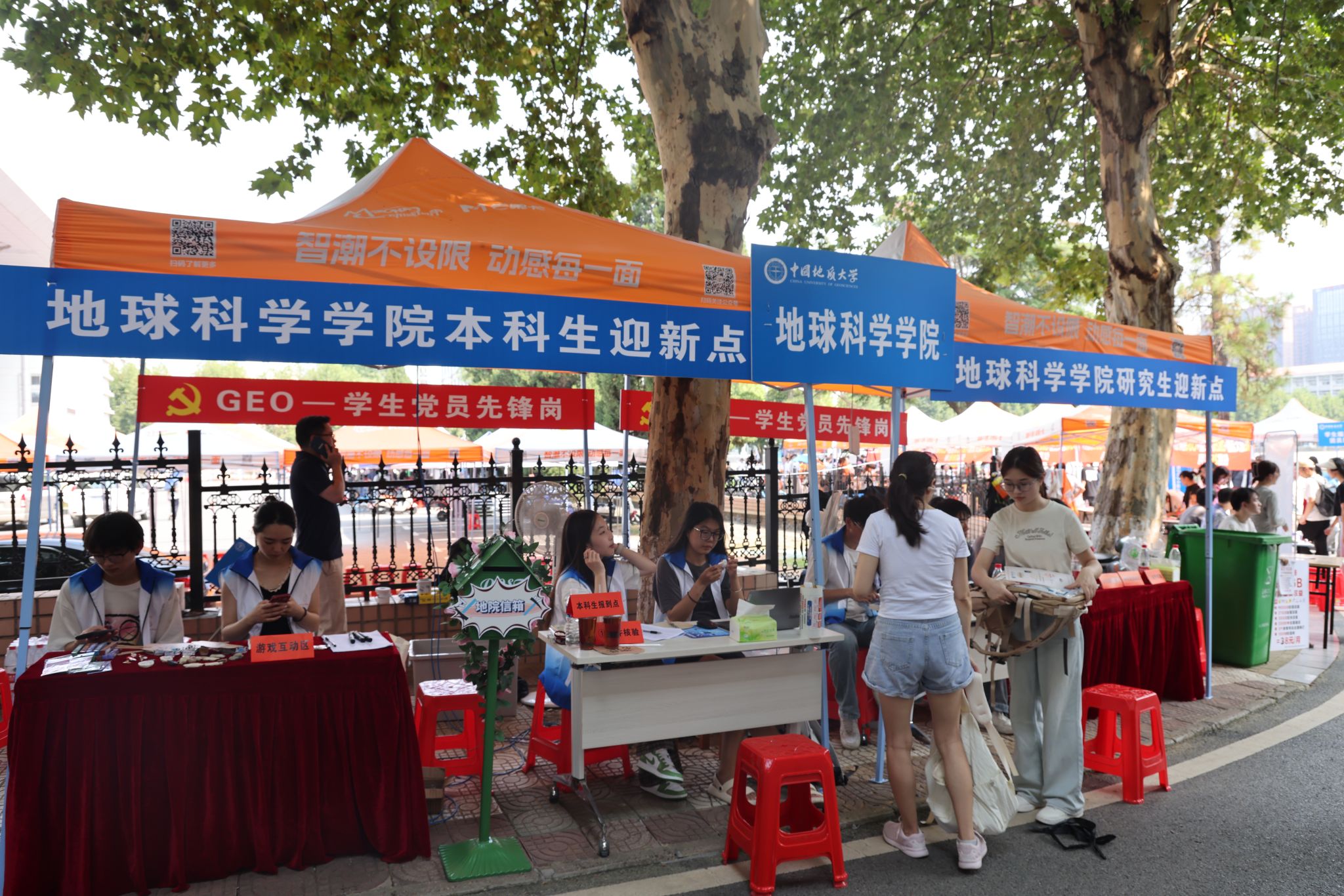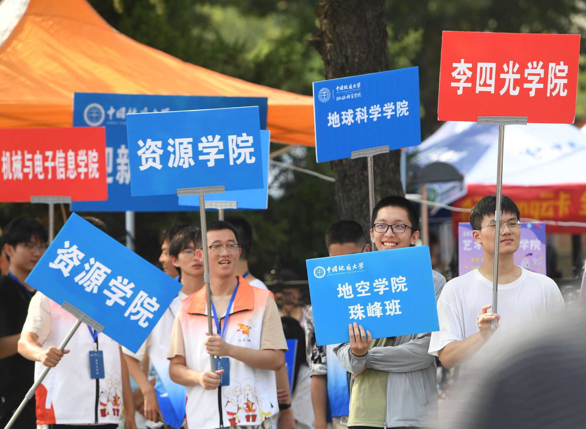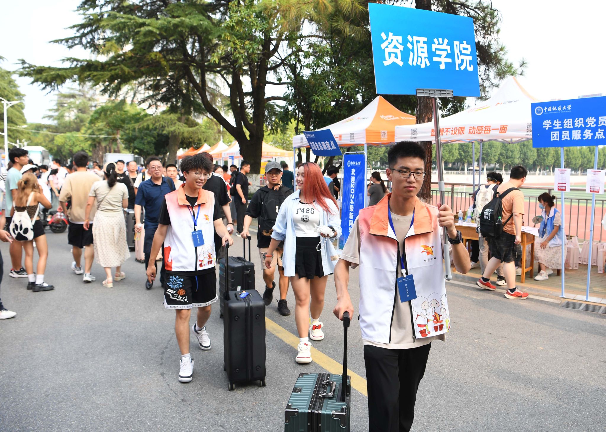 專車接送,到站指引式。在迎新點遞交資料、錄入信息、身份確認。在蔚藍晴空下,新生們正式成為地大人,踏出青春最堅定的步伐。