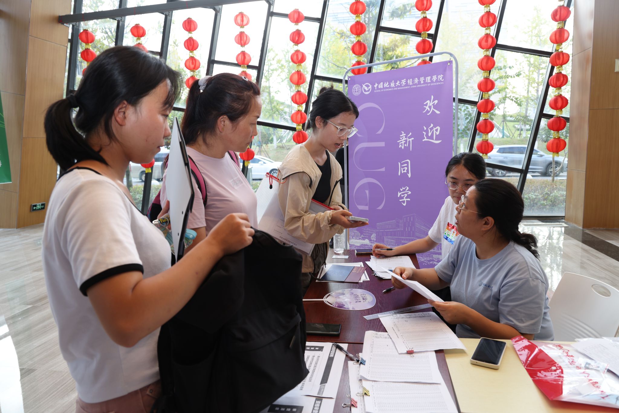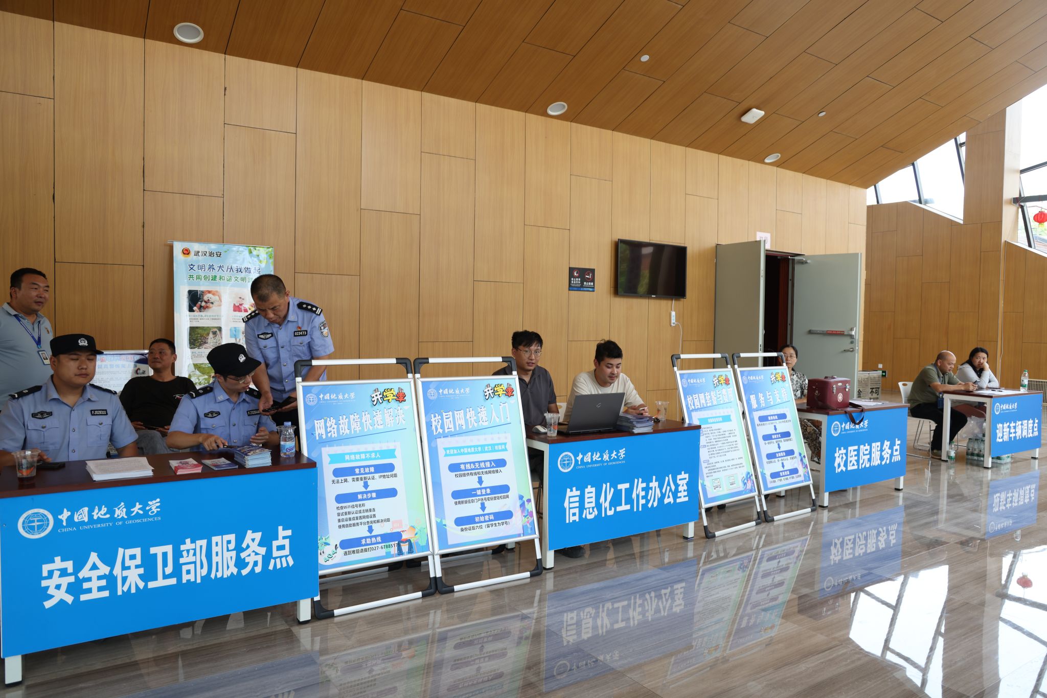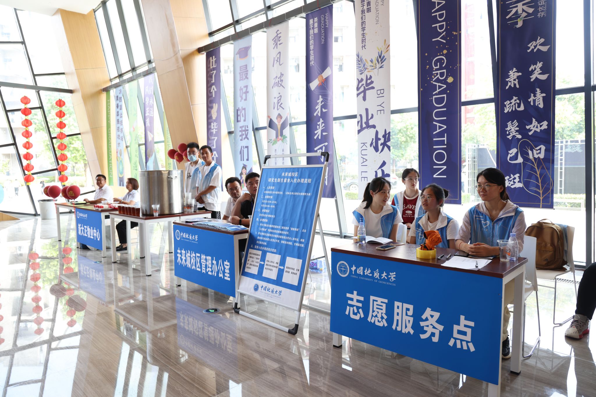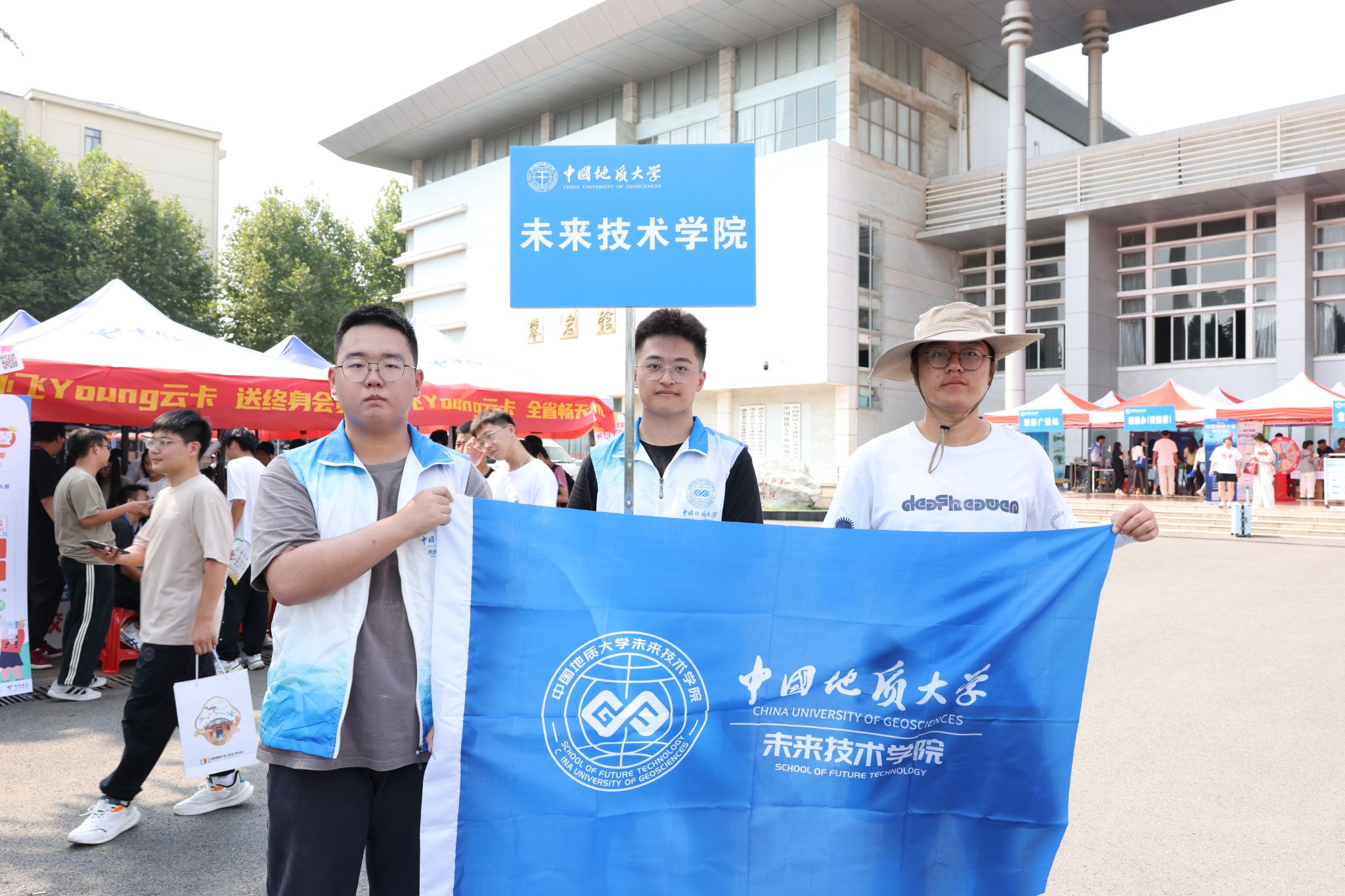 專車接送,到站指引式。在迎新點遞交資料、錄入信息、身份確認。在蔚藍晴空下,新生們正式成為地大人,踏出青春最堅定的步伐。