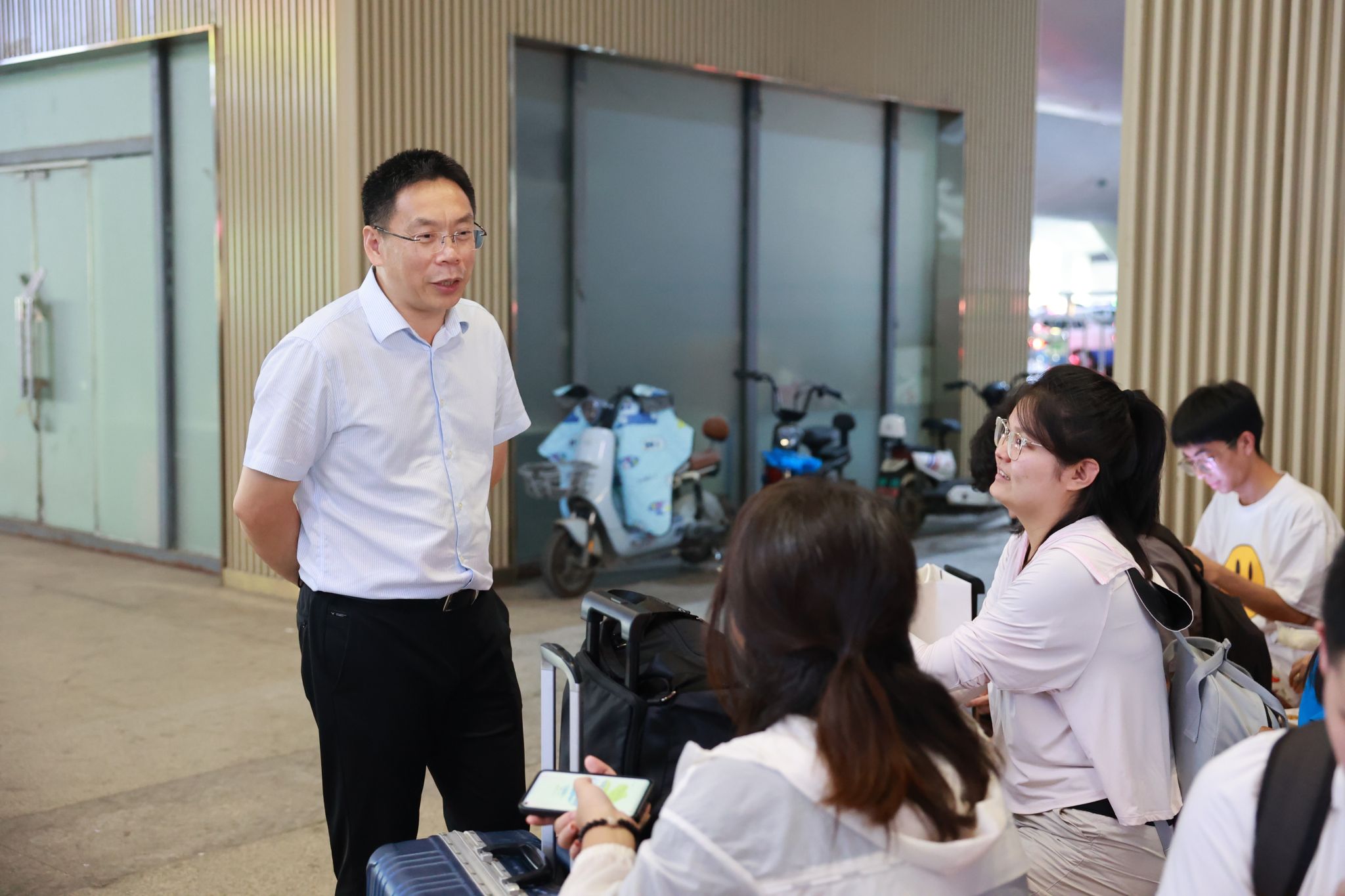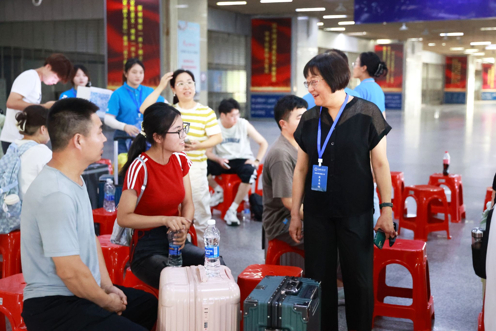 為了迎接新生們的到來,9月2日至3日,約200名黨員教師志愿者、新入職教師志愿者,與學生志愿者一同來到武漢三大火車站、天河機場,為新生們提供接站服務,有序引導、搬運行李、耐心解答,一切井然有序,一雙雙熱情的手,溫暖著新生及家長們。校黨委副書記王甫,黨委常委、組織部部長陳文武帶隊到迎新點慰問志愿者。