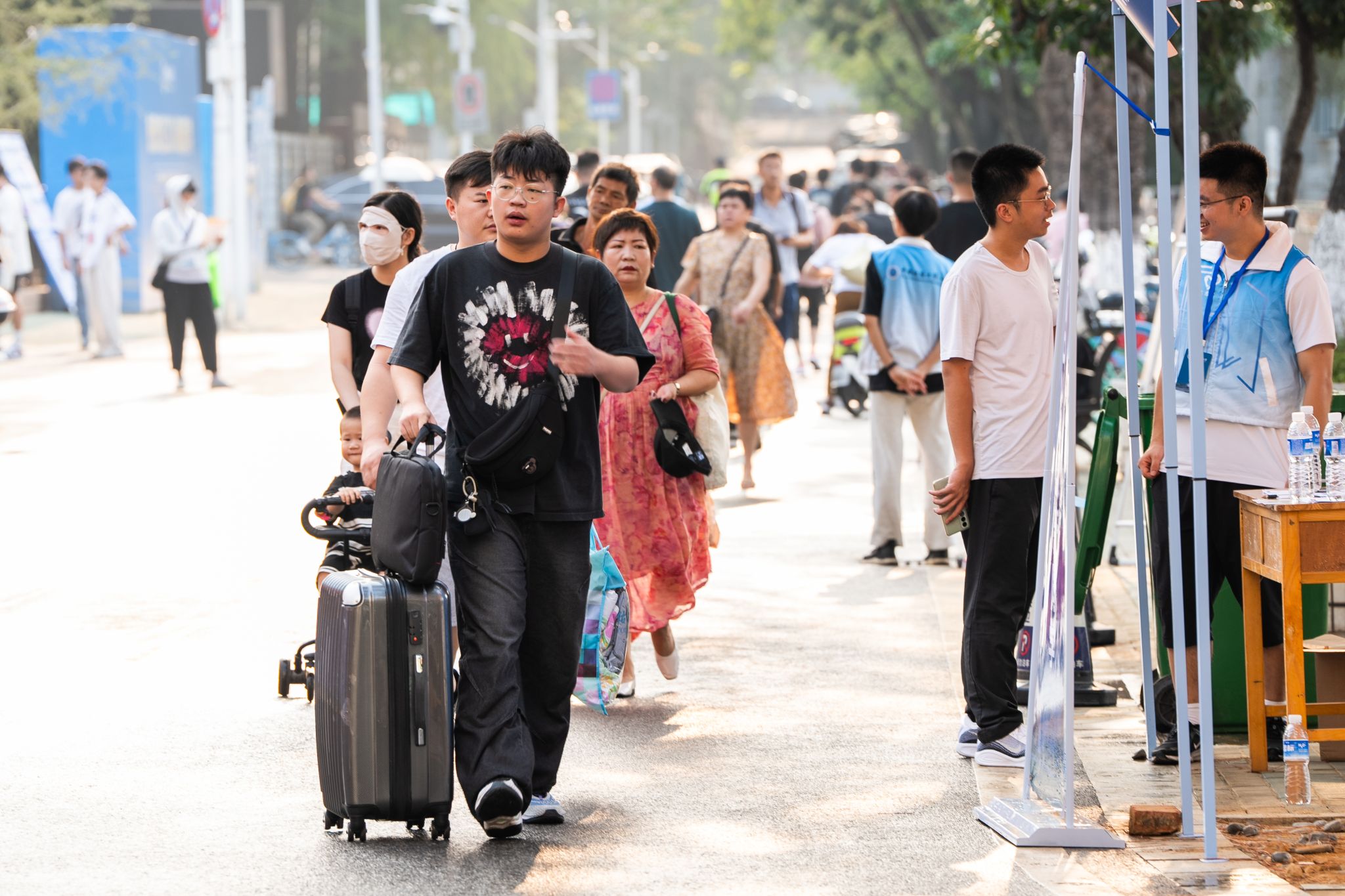 未來技術學院大二的李洋、錢家瑞和陳章,冒著烈日守候在新生大巴的站點,熱情引導新生報到。他們表示,去年的這個時候,學長學姐引導他們報到、幫他們拿行李,志愿精神深深感染了大家。贈人玫瑰,手有余香。作為志愿者,他們不僅僅是在幫助新生們解決實際問題,更是在向新生們傳遞著一種積極向上的態度和精神風貌。這種傳承,能建立深深的情感紐帶,也讓校園生活變得更加豐富多彩和有意義。