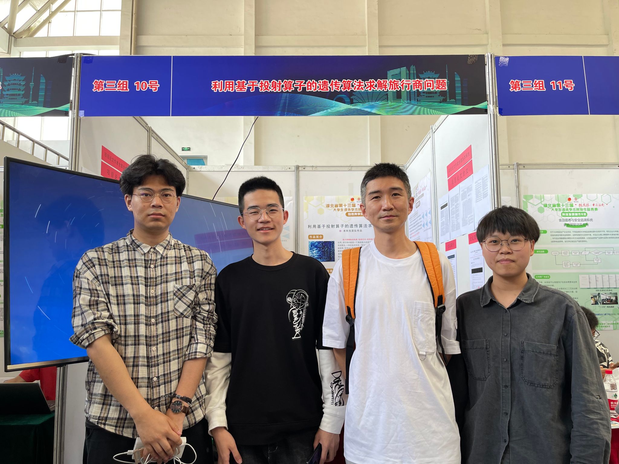 2021年5月,李歡歡(右1)與指導(dǎo)老師及學(xué)生團隊在湖北省“挑戰(zhàn)杯”省賽活動現(xiàn)場