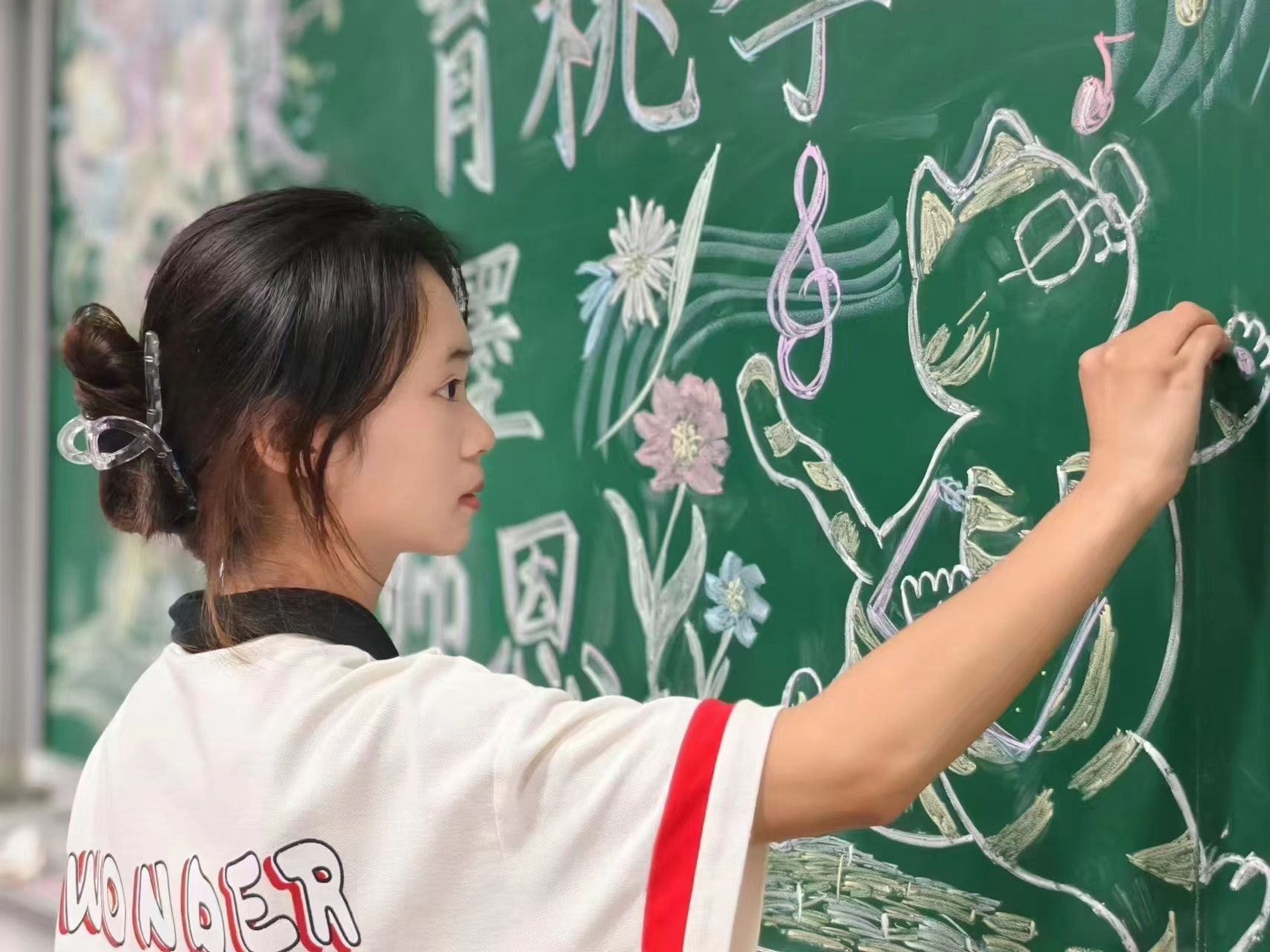 為了制造驚喜,9月9日晚,我校超過700名志愿者在晚課后短短兩小時內,“秘密”完成了百余幅板畫的創作。這些作品風格多樣:有的采用中國傳統元素,向師者先賢孔子的教育精神致敬;有的則以卡通形式生動地再現了老師的形象;還有些則巧妙地融入了老師授課內容中的相關元素,展現了各個學科的獨特魅力……