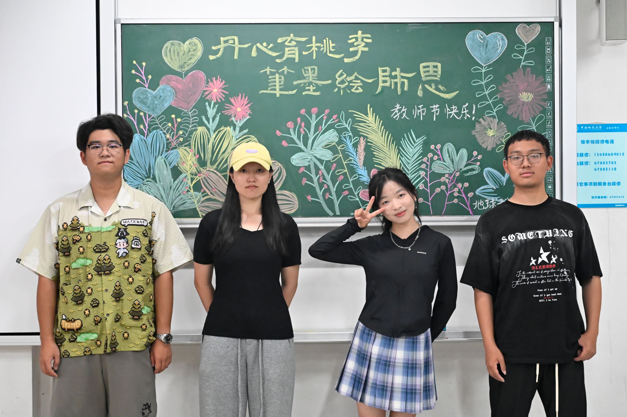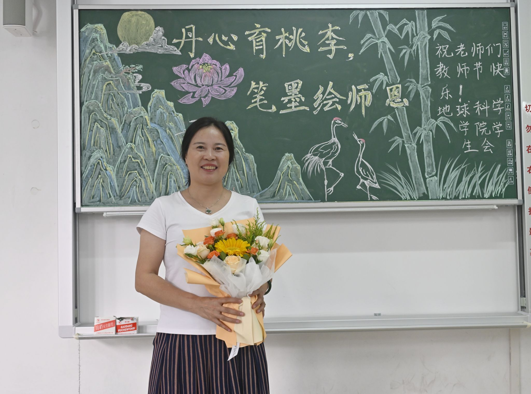 地大新聞網訊(通訊員 蔣秋香 田雯惠 劉明輝 )9月10日清晨,當材料與化學學院王群英老師步入教室時,一幅精美的板畫映入眼簾。“王老師,您好!祝您教師節快樂!”班上的同學獻上鮮花,并齊聲送上祝福。王老師感動得眼角濕潤,以爽朗的笑聲回應了學生們的心意。這一刻,在我校兩校區百余間教室內,都上演著同樣溫馨的一幕。