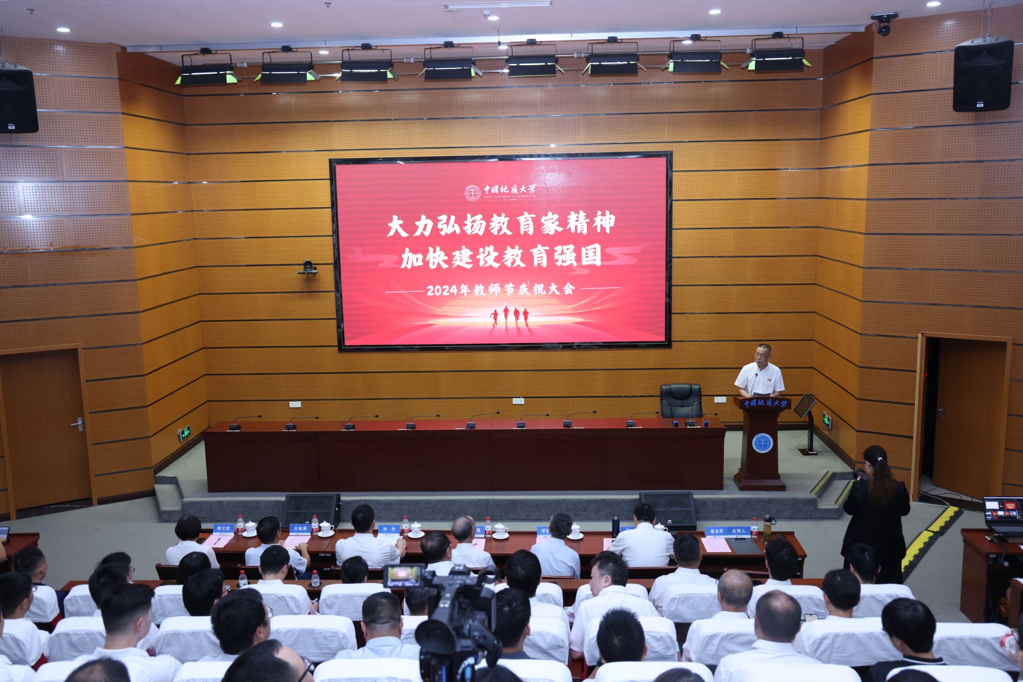 地大新聞網訊(通訊員 鄧錫琴 攝影 焦思勤)為慶祝全國第40個教師節,9月10日,我校舉行2024年教師節慶祝大會。中科院院士殷鴻福,在校校領導,黨委常委,校長助理,2024年全體新進教職工,中青年教職工代表,學生代表,二級單位主要負責人及人事秘書參加會議。