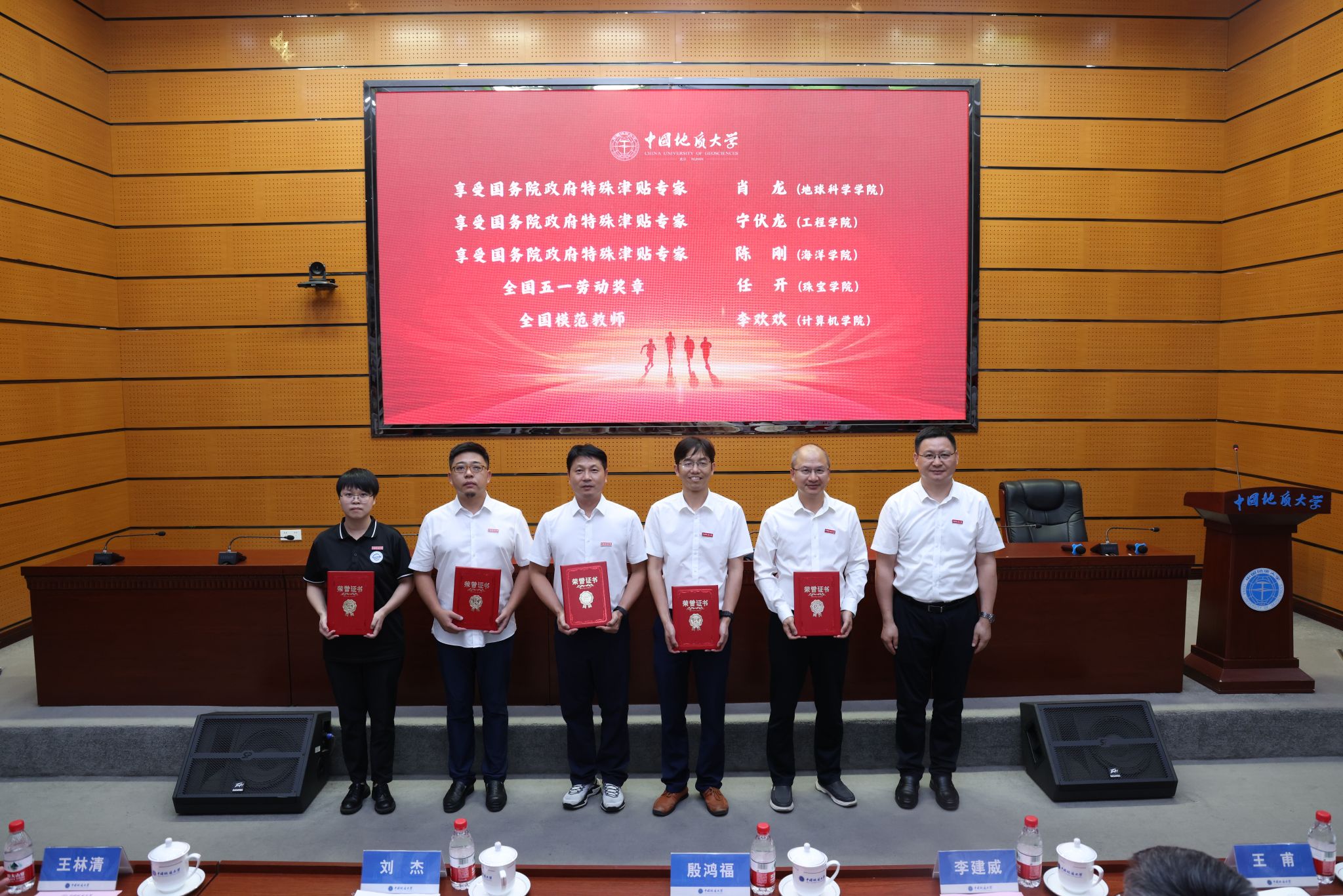 黨委書記劉杰向“2023年度享受國務院政府特殊津貼專家”肖龍、寧伏龍、陳剛,及“全國模范教師”獲得者李歡歡、“全國五一勞動獎章”獲得者任開頒發榮譽證書。