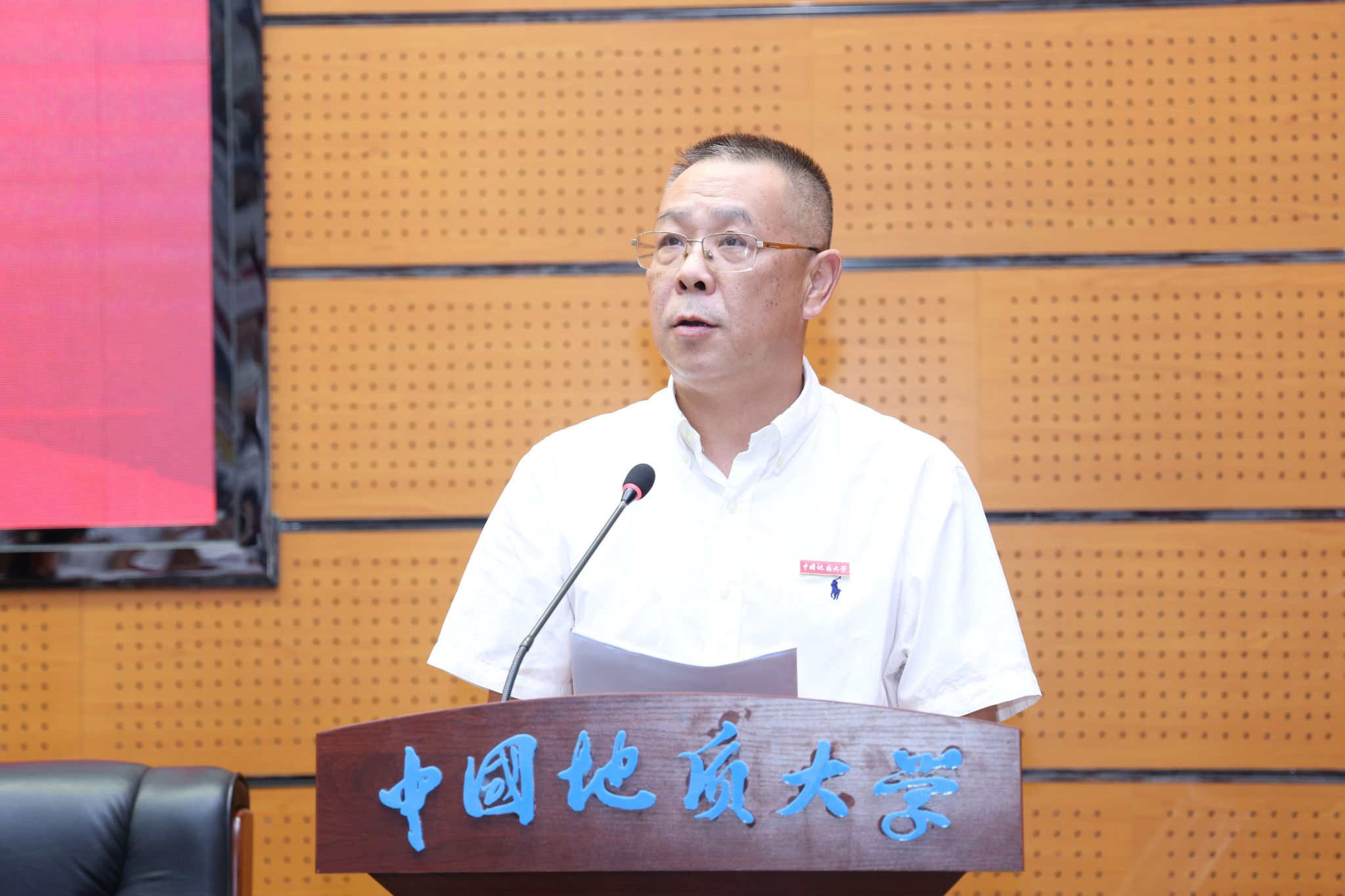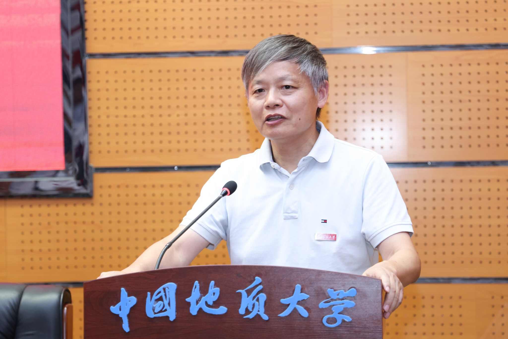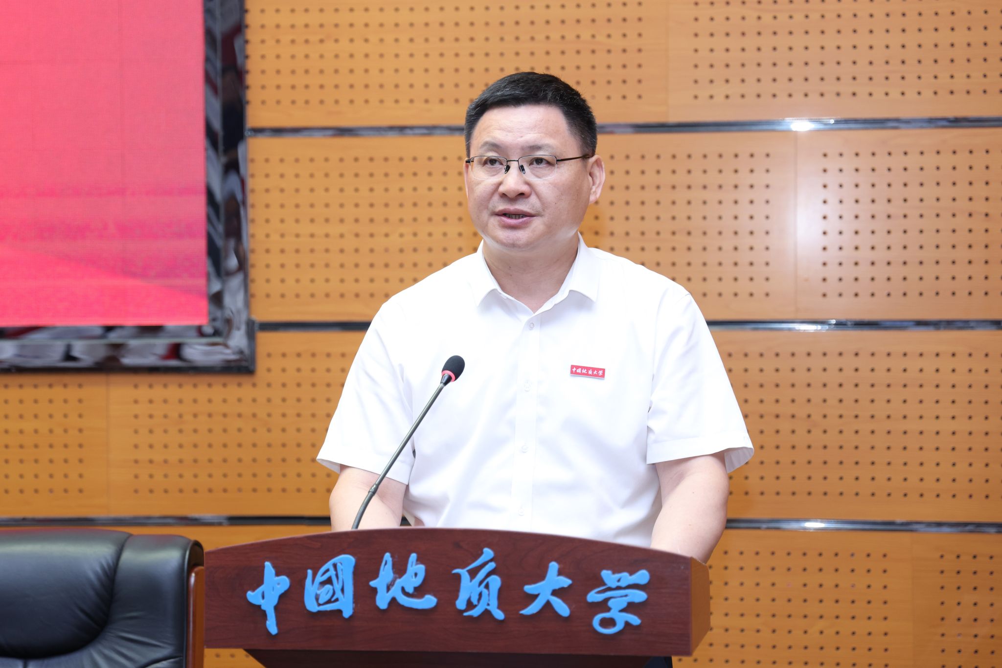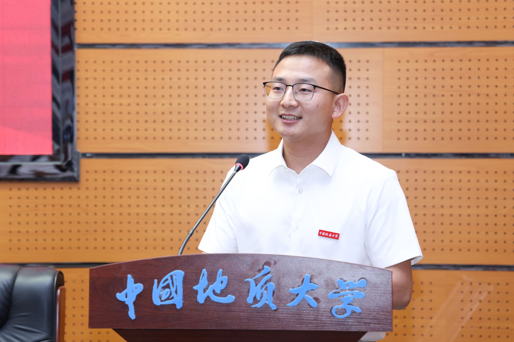 地球科學學院特任教授、“地大百人”計劃入選者代旭代表新入職教職工發言,他分享了自己在地大12年間從學生到老師身份轉變的感想和體會,并表示將在“艱苦樸素、求真務實”校訓精神指引下,不忘初心、砥礪奮進,爭做“四有”好老師。