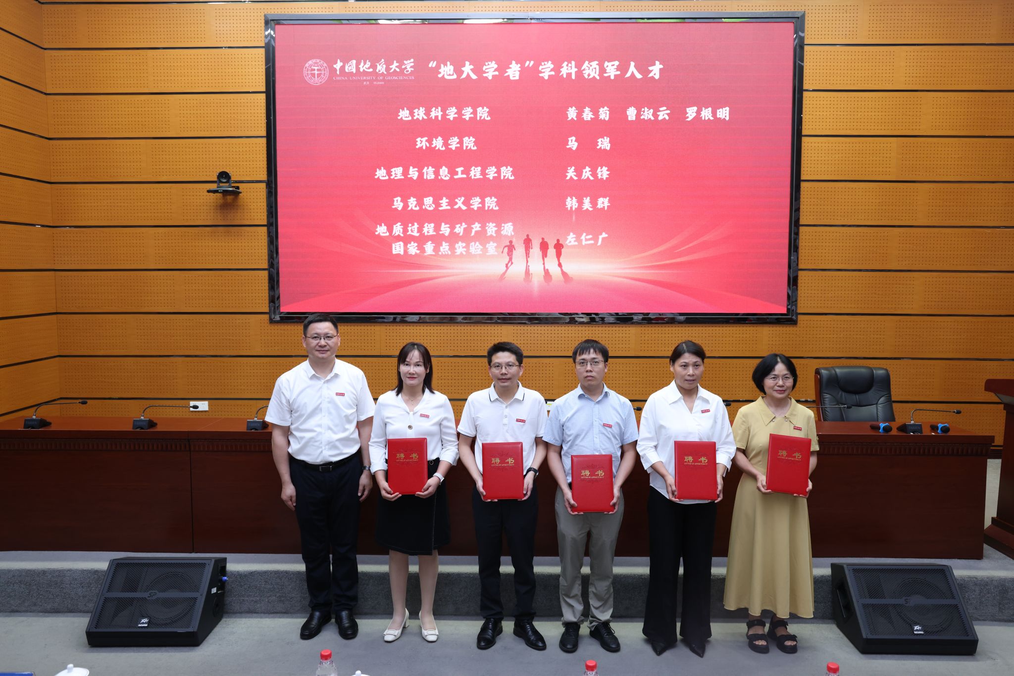 劉杰向地球科學學院黃春菊、曹淑云、羅根明,環境學院馬瑞,地理與信息工程學院關慶鋒,馬克思主義學院韓美群,地質過程與礦產資源國家重點實驗室左仁廣等頒發“地大學者”學科領軍人才聘書。