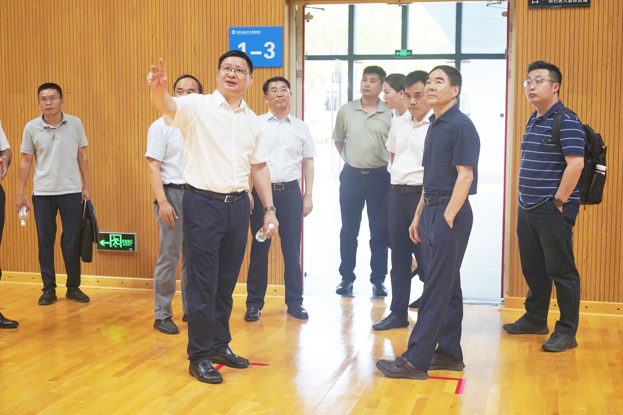 隨后,調研組一行來到未來城校區體育中心,對室內高水平籃球館、游泳館等區域進行實地走訪,深入了解功能、配置等具體情況。