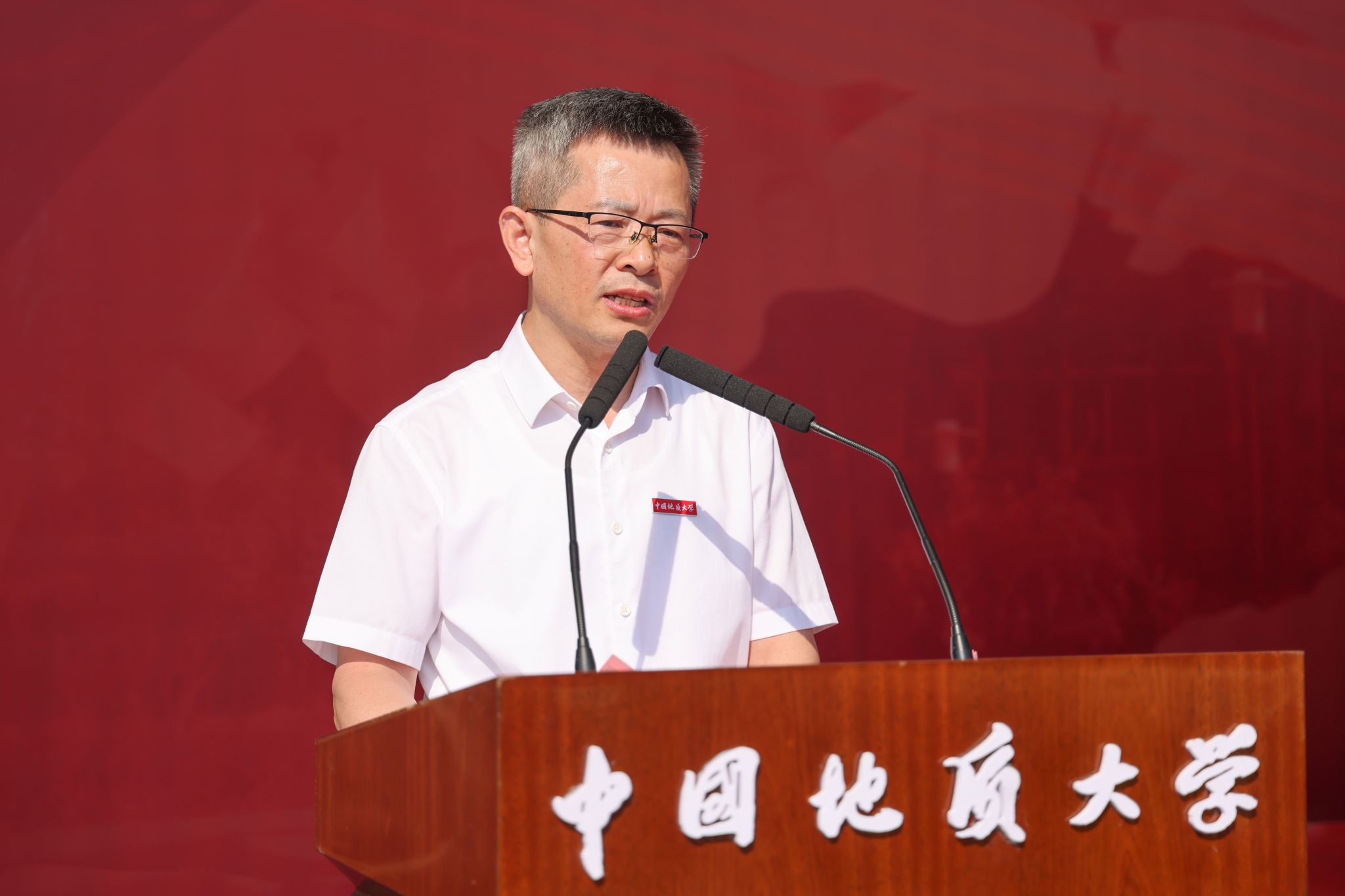 同學們,地大是你們逐夢之旅的新起點,希望你們在認識自我中敢于有夢,在追求自我中勇于追夢,在超越自我中勤于圓夢,努力成長為“品德高尚、基礎厚實、專業精深、知行合一”的優秀地大人,奏響強國建設、擔當有我的青春之歌!