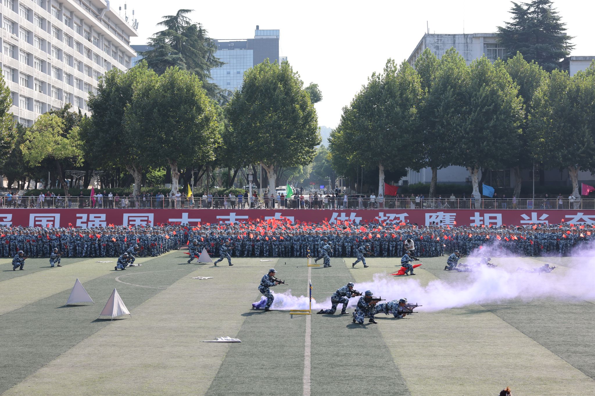 校長李建威作了題為《認識自我、追求自我、超越自我》的講話。他說,4700余名新生英姿颯爽走過主席臺,全面展示了過去兩周的軍訓成果和良好的精神風貌,大家的蓬勃朝氣和昂揚斗志讓地大校園更加充滿生機與活力。他對新生們表示歡迎和祝賀,向新生們的父母、承訓的空軍預警學院全體教官表示問候和感謝。