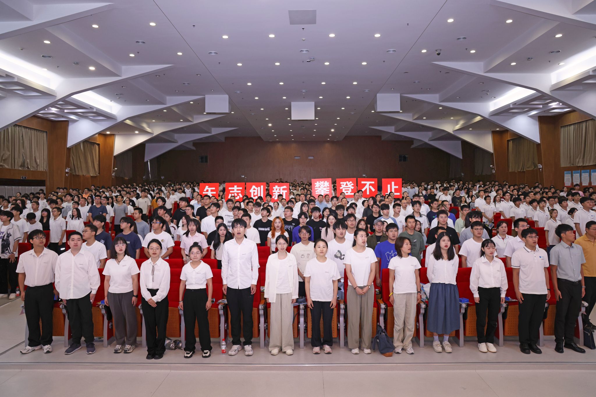 典禮開始,全體起立,師生齊唱國歌。