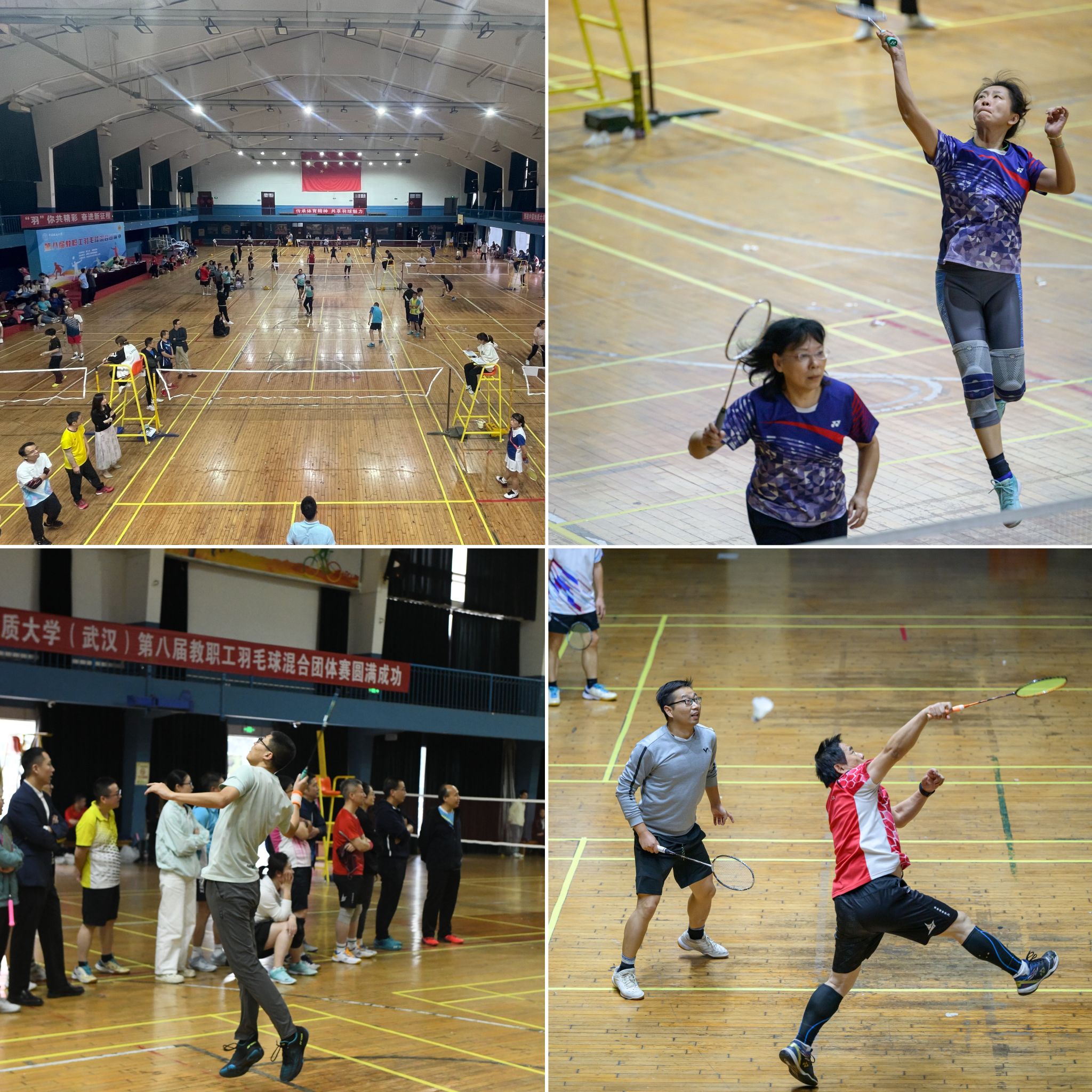 地大新聞網訊(通訊員 李夢琳 攝影 程璜鑫 周斐霏 莊天慧 柯皓淞)10月19日至20日,由校工會、體育學院主辦,教職工羽毛球協會協辦的第八屆教職工羽毛球混合團體賽在南望山校區西區體育館舉行,來自各分工會24支代表隊的300余名羽毛球運動員參加了比賽。