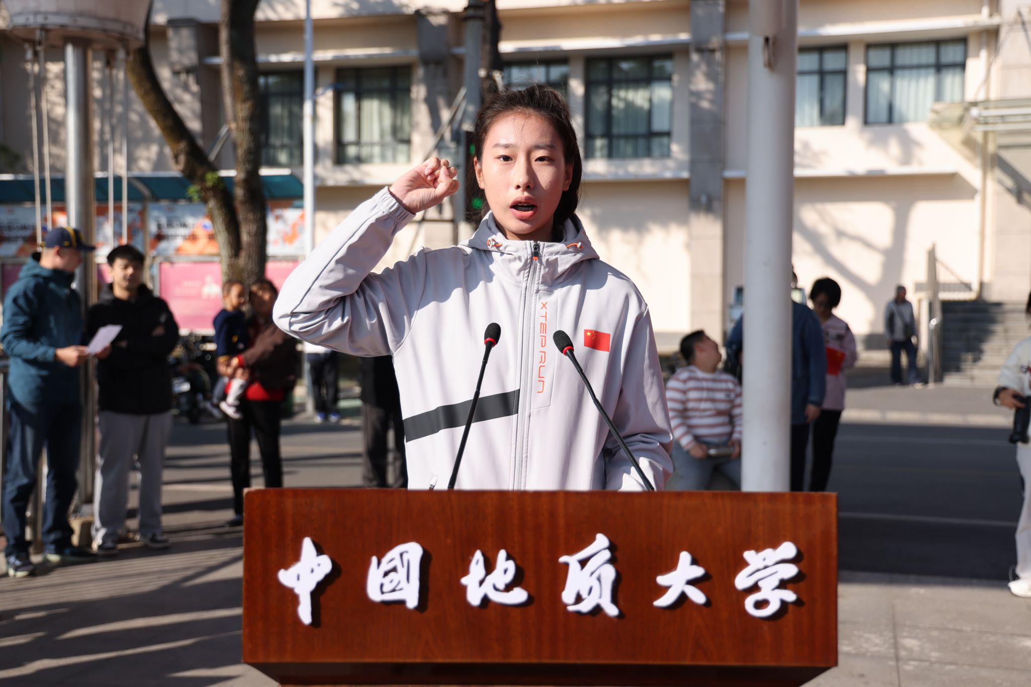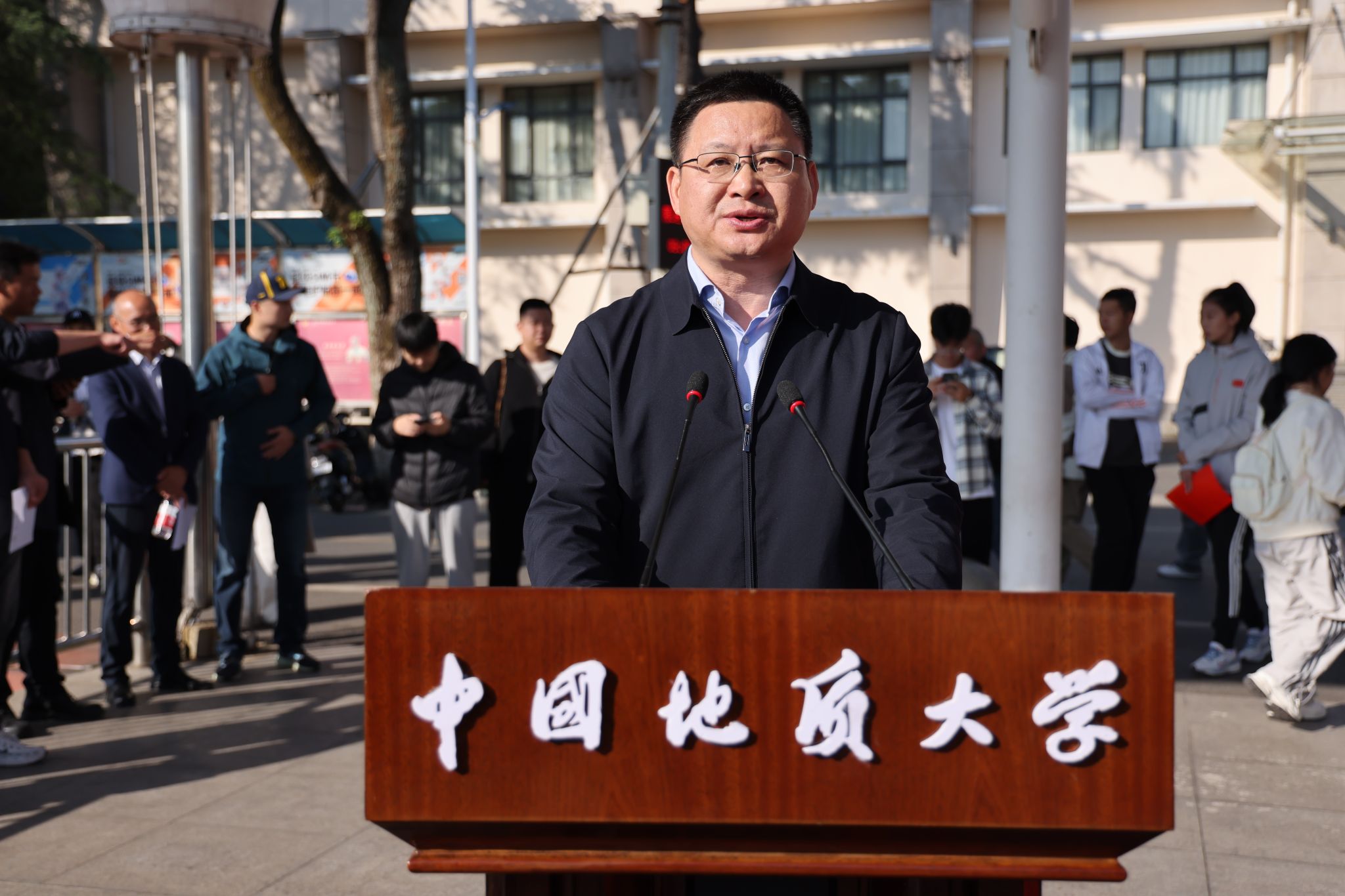 校黨委書記劉杰致開幕辭。他說,運動會是學校體育工作的一場盛會,不僅傳遞著地大的精神特質,更展現著師生的時代風貌。建校70余年來,體育運動與學校的事業發展密切相連,成為地大辦學的一張靚麗名片;與之相隨,為國攀登,也成為地大人共建共享的精神高地。他回顧了學校在登山、群眾體育與體育專業教育、競技體育等方面取得的驕人成績,強調弘揚地大“攀登精神” ,希望師生們在體育運動中強健體魄、追求卓越,朝著更快、更高、更強、更團結的目標不斷進發,為學校早日建成地球科學領域世界一流大學不懈奮斗。