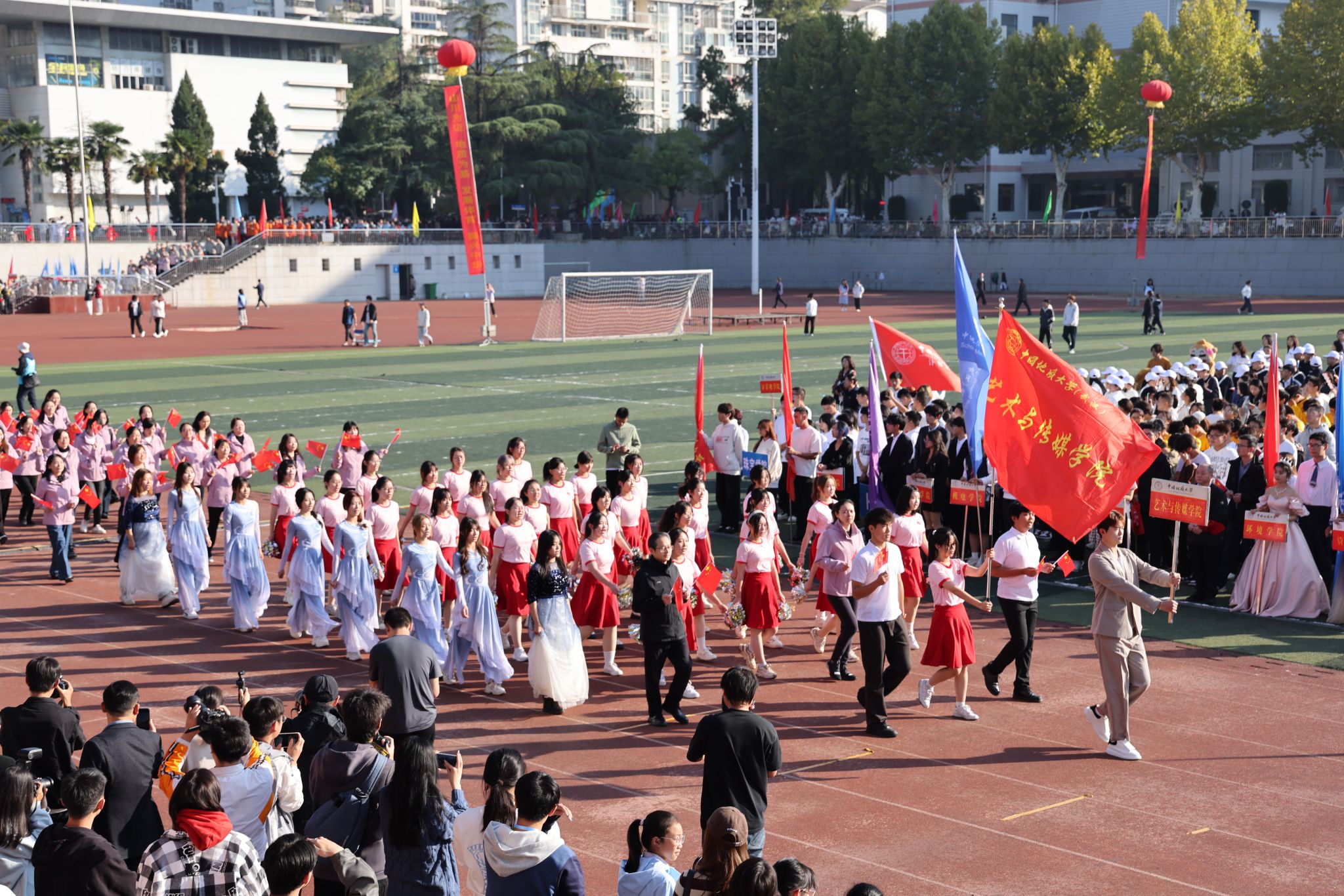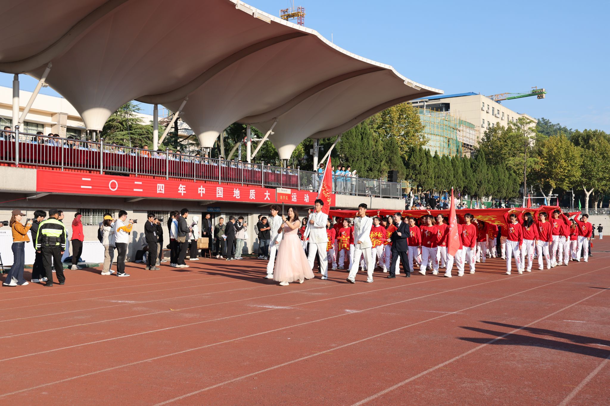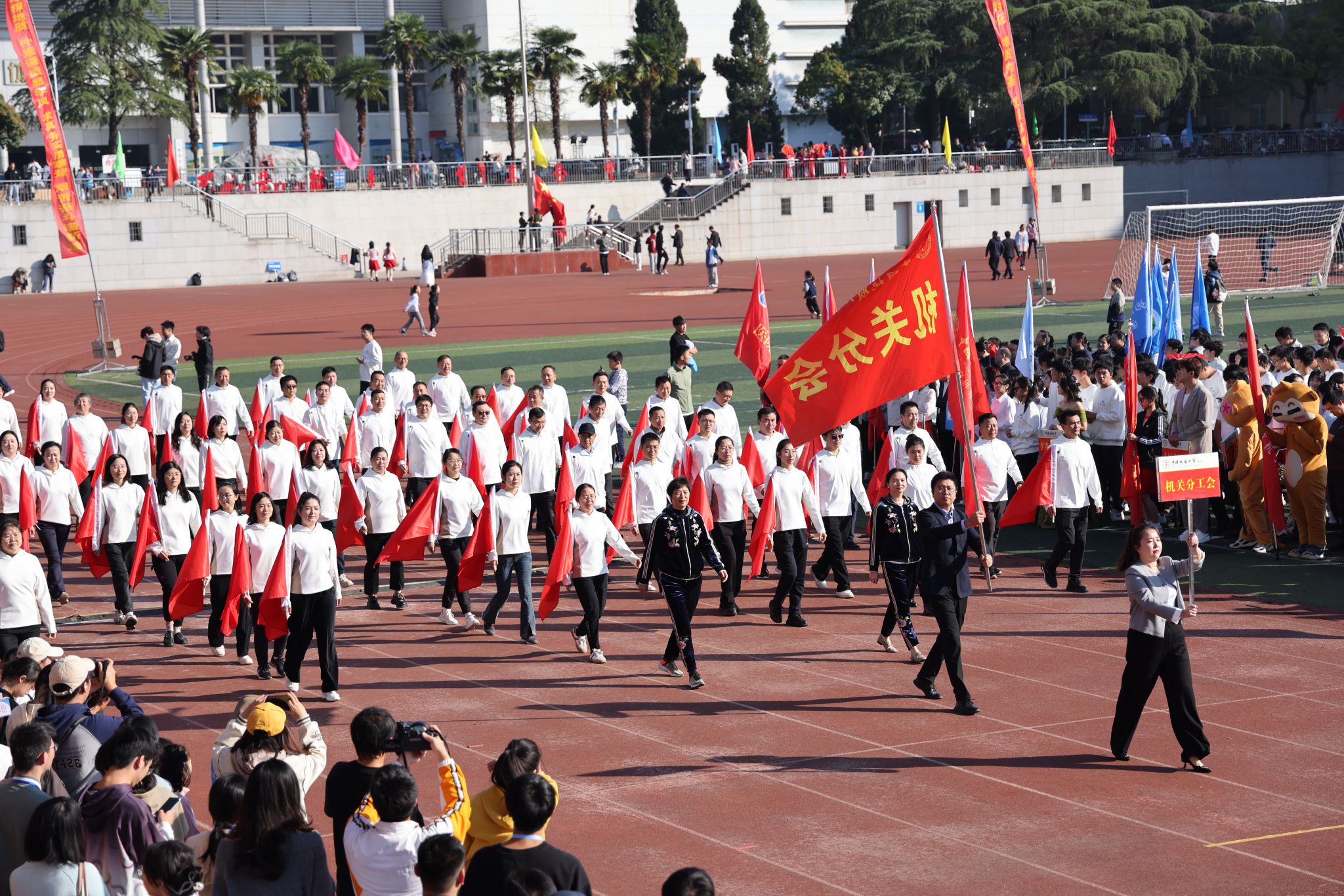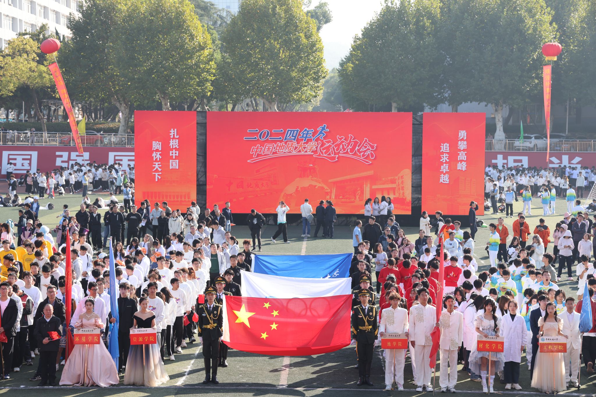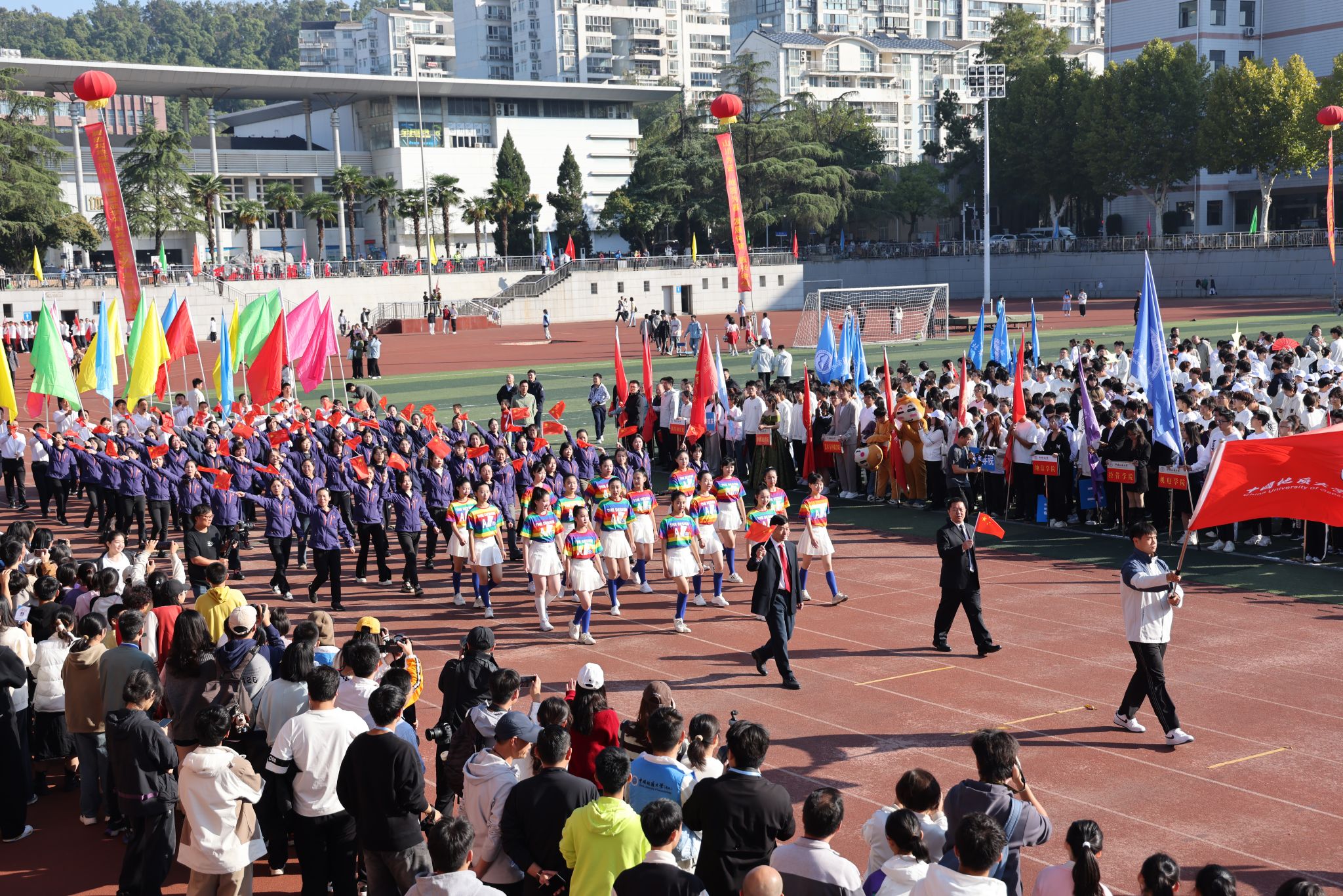 地大新聞網訊 吶喊與歡呼交織,動感與青春碰撞。運動場上旌旗飄揚,熱鬧非凡。10月25日,我校2024年秋季運動會在南望山校區西區運動場舉行。校領導劉杰、王華、唐忠陽、王甫,黨委常委、組織部部長陳文武,學校各二級單位負責人以及各分工會、各學院代表隊參加開幕式。