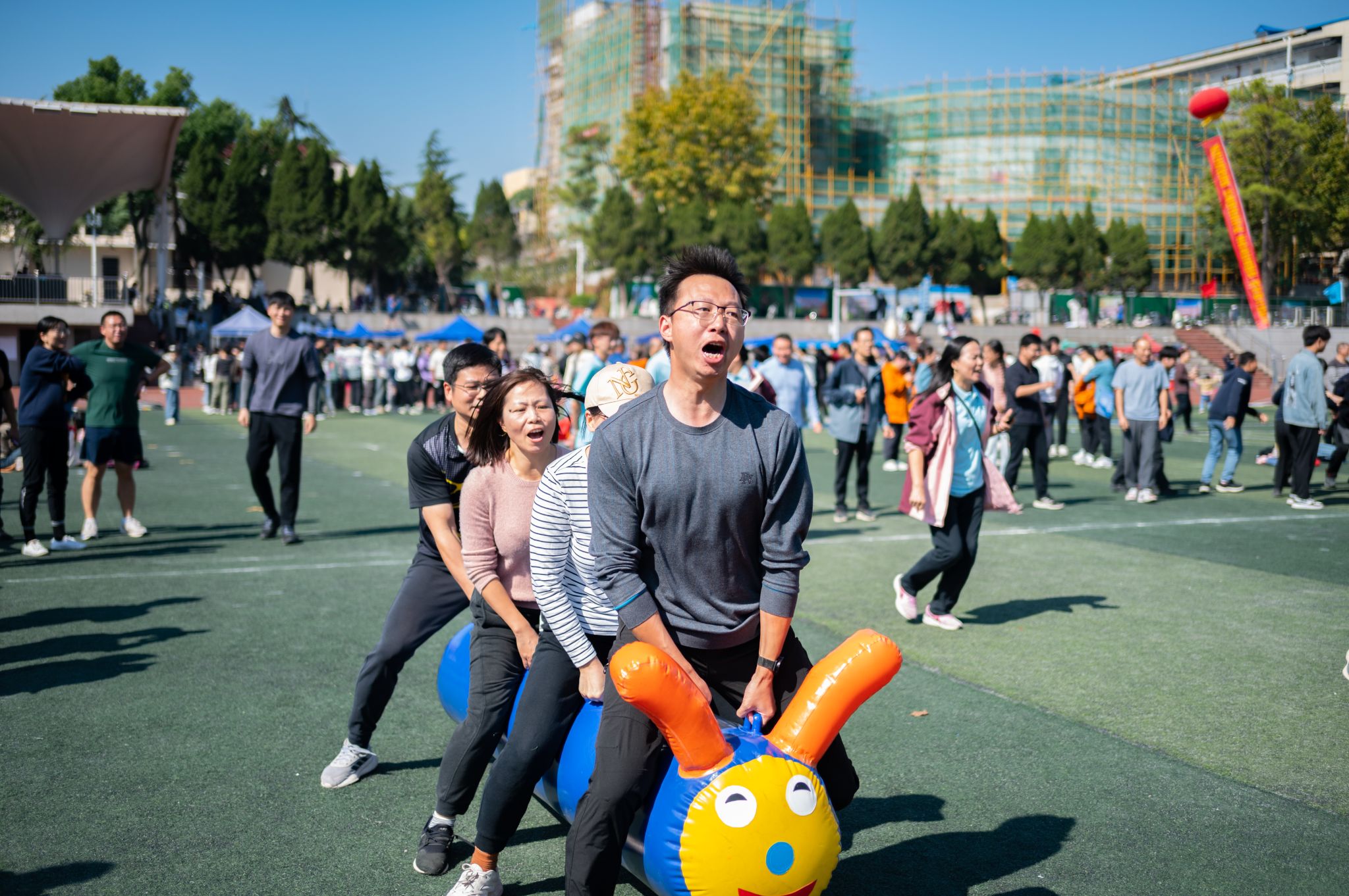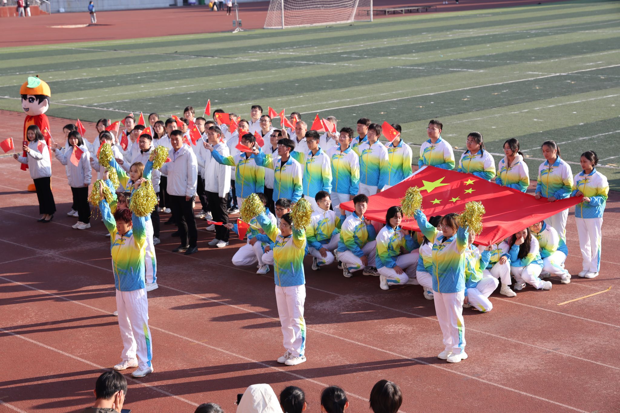 伴隨著激昂的旋律,各方陣英姿颯爽、意氣風發,邁著整齊的步伐,喊出響亮的口號,依次走過主席臺。運動員們手中飄揚的紅旗迎風飄揚,活力四射的玩偶、熱情洋溢的舞姿贏得陣陣掌聲。