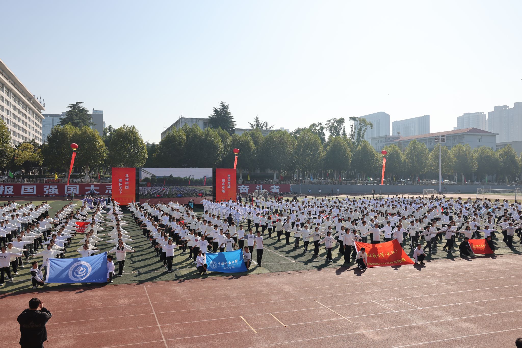 開幕式后,各學院進行了集體廣播操比賽,各代表隊洋溢著青春活力,整齊劃一的動作、精神飽滿的面容,展現了地大學子的昂揚風貌。