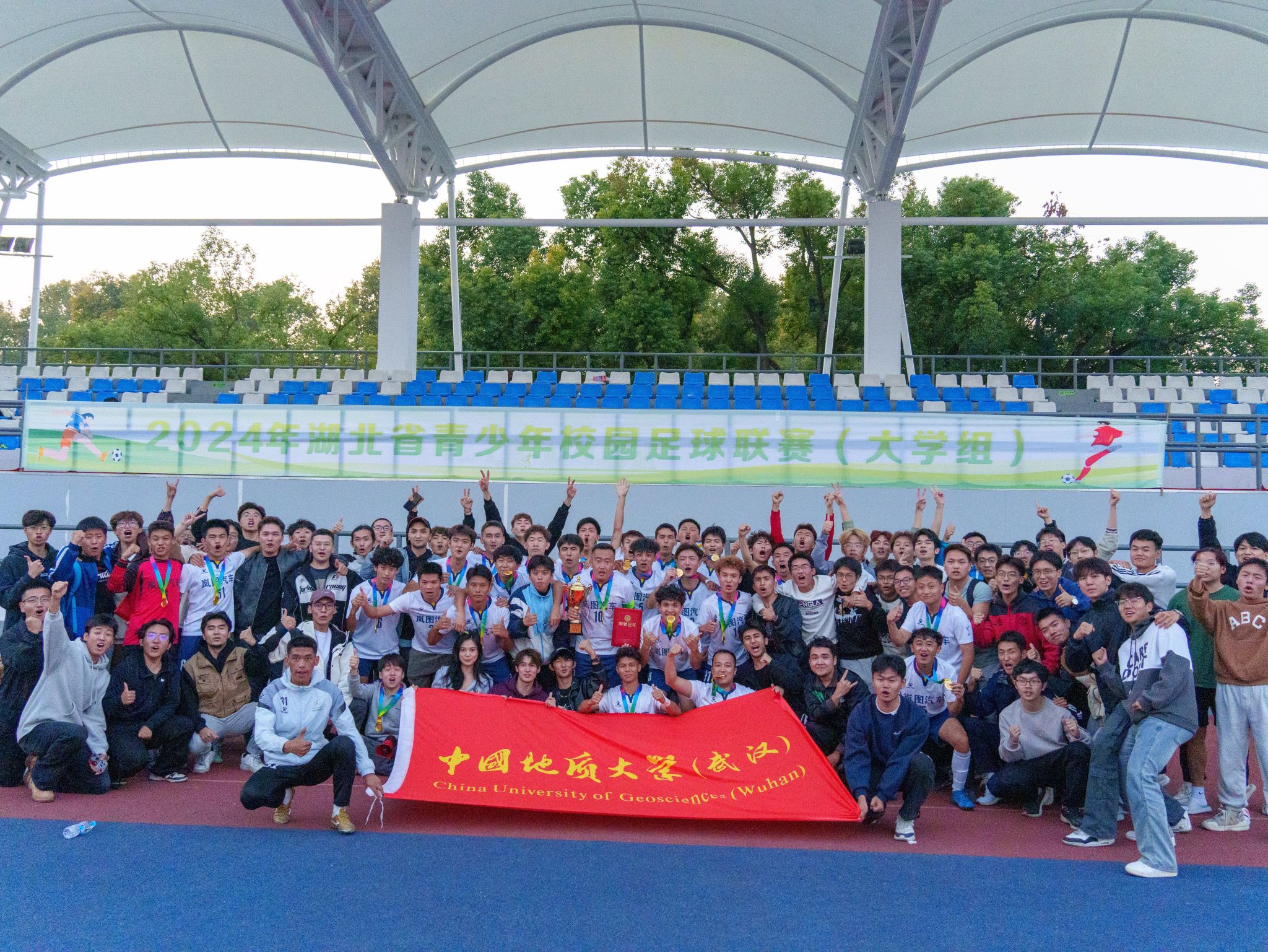 地大新聞網訊 11月1日至11月6日,由湖北省教育廳體衛藝處主辦、湖北省學生體育協會足球委員會協辦的2024年湖北省青少年校園足球聯賽(大學組)男子校園甲組比賽在華中科技大學主校區東操場進行。本次聯賽由來自我校、武漢大學、華中科技大學、中南民族大學、中南財經政法大學、華中農業大學、武昌工學院、武漢工程大學等八所高校近200名選手參與,我校足球健兒在比賽中展現出較好的速度、力量、意識和較強的對抗性,靠著頑強的斗志和特別的戰術執行力最終戰勝各隊強手榮獲冠軍。此次比賽由體育學院副院長李倫領隊,主教練皮崴老師全程指導。