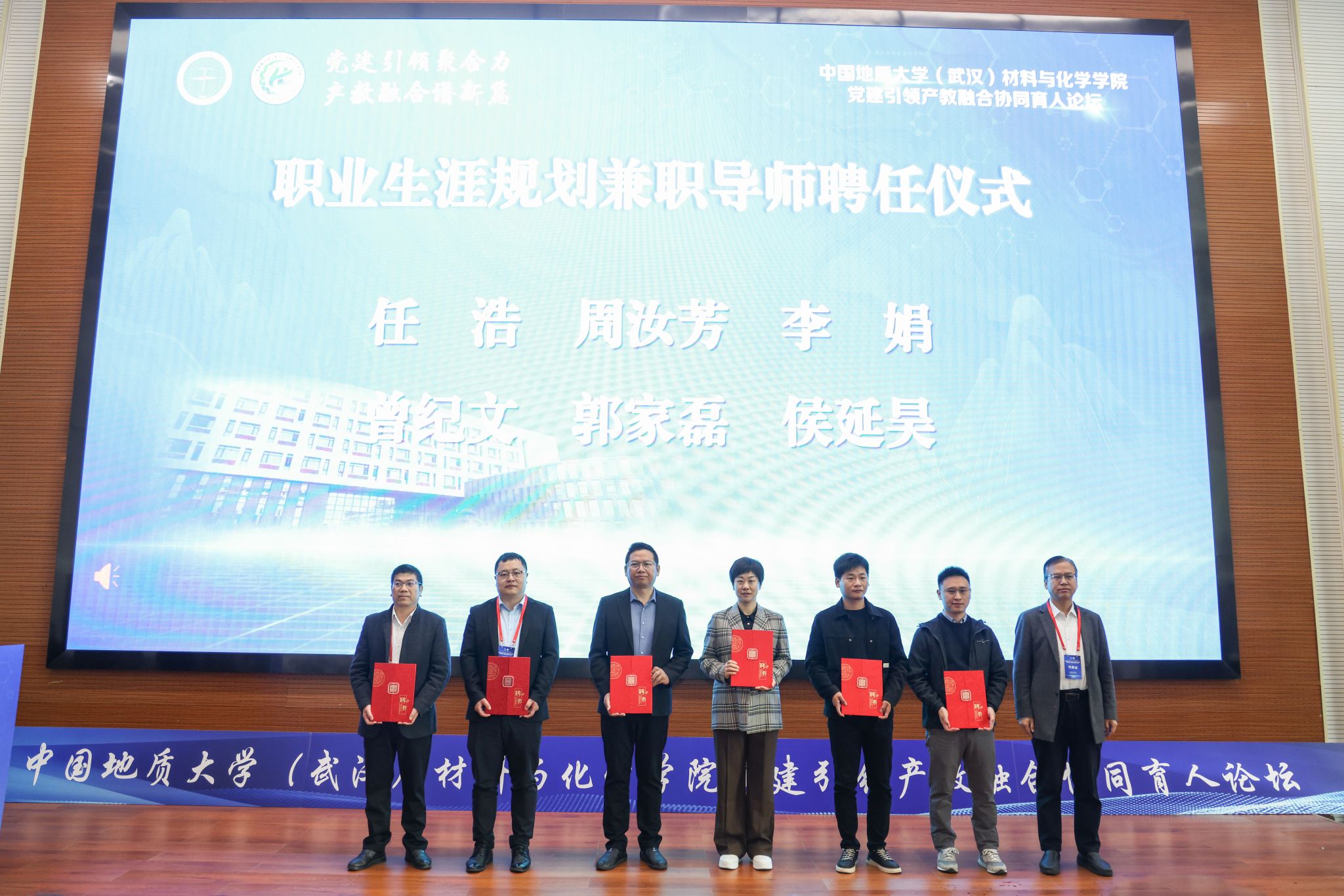 論壇上,材料與化學學院為6家企業授學生實踐教育基地授牌,新聘任15位行業企業精英分別擔任創新創業兼職導師、職業生涯規劃兼職導師、校外兼職輔導員。據悉,2024年4月,材料與化學學院依托產教融合聯盟成立儀式聘任50余名企業專家擔任學院創新創業兼職導師、職業生涯規劃兼職導師、校外兼職輔導員,并為大一學生配備校外兼職輔導員,充分引入政企等社會資源助力人才培養,將企業育人資源深度融入學院黨建思政與實踐教育環節。