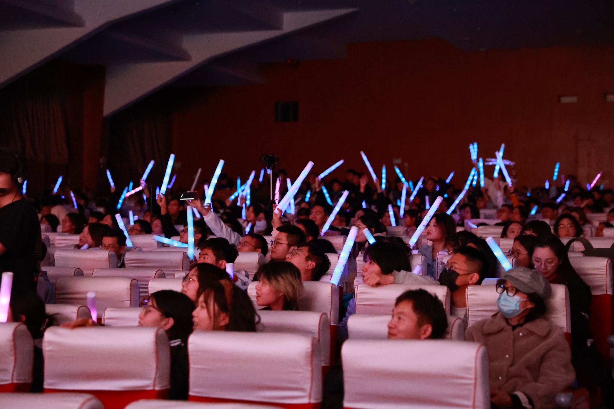 子時伊始,南望山西區操場的中央迎新嘉年華正在進行。NDS街舞社、模特隊、第五元素合唱團、舞蹈團、大學生龍獅團輪番登場。觀眾們揮舞著熒光棒,星星點點的光芒與璀璨的燈光交相輝映。