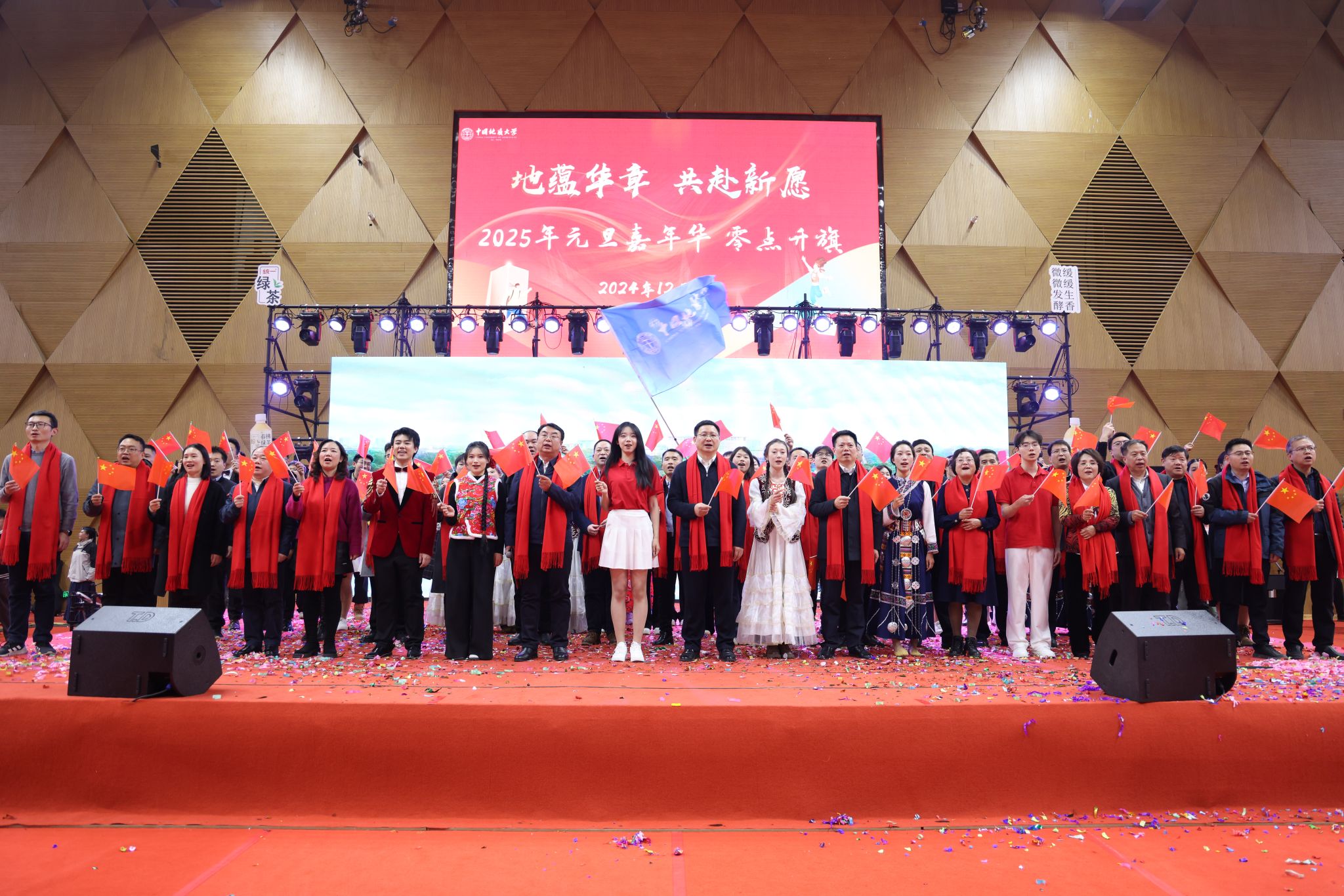 祥龍賀瑞,新歲序開;地蘊華章,同啟新愿。回首這場元旦嘉年華,我們在歡歌笑語中告別舊歲,于精彩紛呈間擁抱新年。新歲已至,征程再啟,讓我們帶著這份喜悅與憧憬,繼續在知識的海洋破浪前行,于校園的沃土播撒希望,在未來的日子里續寫地大的華章!(文/焦思勤 孫彥欽 大學生記者團 楊明駿 王金鑫 劉婧瑤 吳江 陳姝伊 蔡卓飛 湯登峰 圖/焦思勤 孫彥欽 樊叢蓉 龐熠 李恒一 丁乙 大學生記者團 王文坤 黃英傲 龍星語 范宇洲 李迅 張瀚銘 肖茜雯 宋航宇 邱桂杰 李帥 審稿 陳華文)