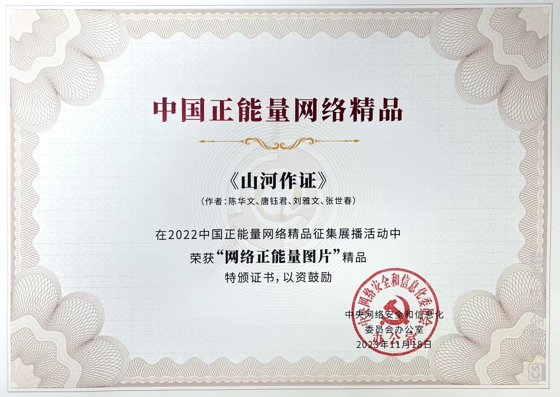 《山河作證》榮獲中央網信辦中國正能量網絡精品作品