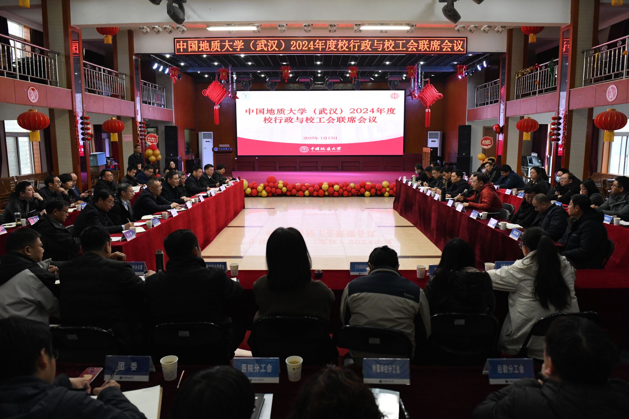 地大新聞網訊(通訊員 徐康 攝影 周斐菲)1月13日,我校2024年度校行政與校工會聯席會議在南望山校區東區教工活動中心召開。在校校領導,黨委常委,校長助理,相關單位負責人,工會委員會委員,各分工會主席,教職工代表等80余人參加會議。校黨委副書記、工會主席王甫主持會議。