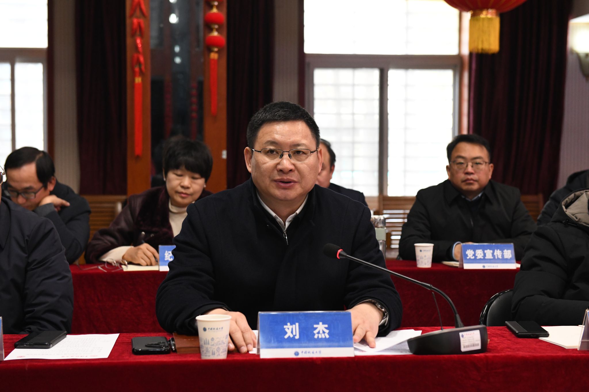 研究生院院長趙葵東作高層次人才培養改革專題匯報;人力資源部部長郭上江、后勤保障部部長徐巖、醫院院長謝先才和張瑋分別圍繞會前征集議題作專題發言,匯報本單位2024年度完成的事關教職工切身利益、事關民生的重點工作。