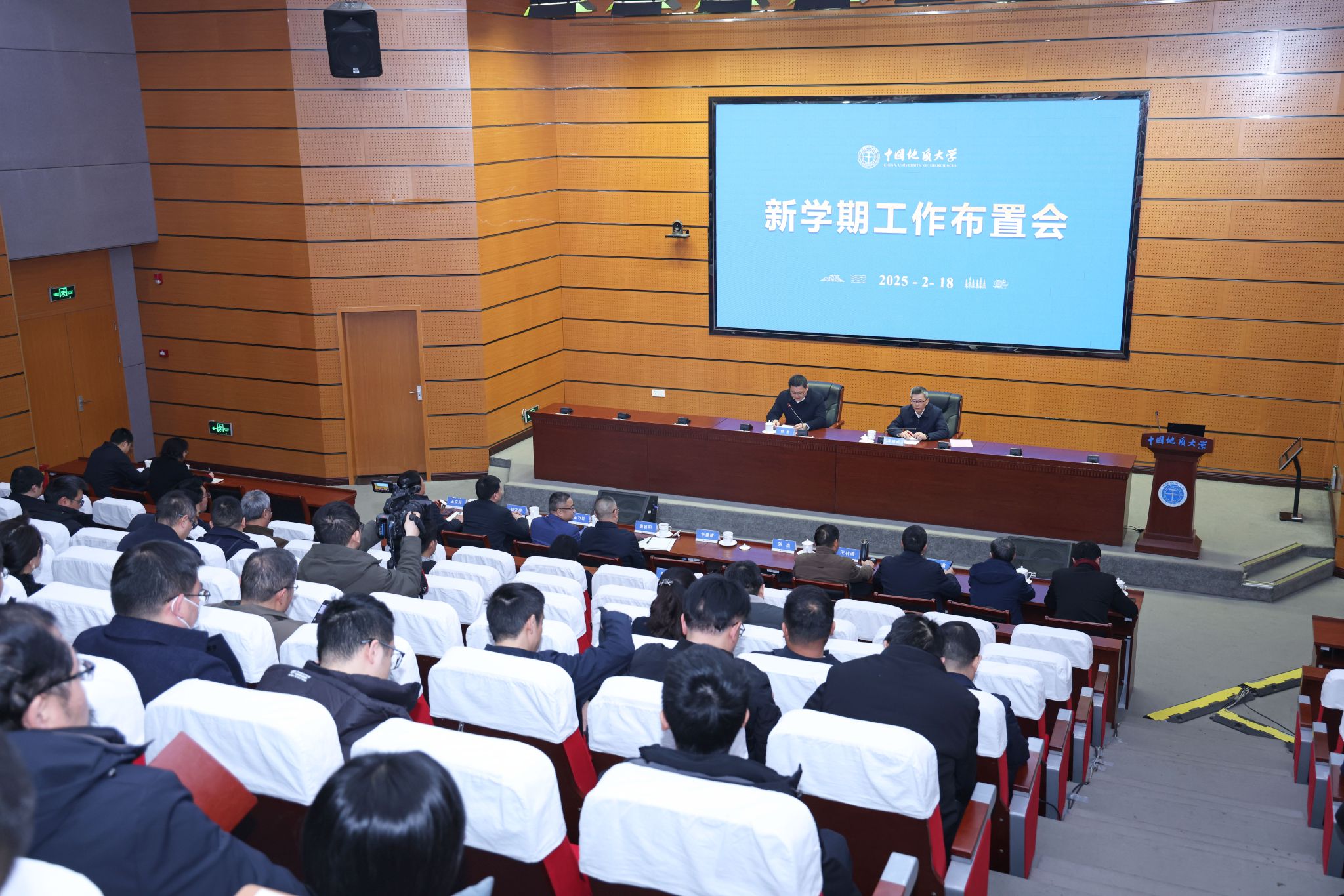 校長李建威部署新學期重點工作,并對做好2025年工作提出要求:要堅持和加強黨的全面領(lǐng)導,抓好干部隊伍建設(shè),縱深推進全面從嚴治黨,推進黨建與事業(yè)發(fā)展深度融合,提升“一融雙高”效能;要落實立德樹人根本任務(wù),深化教育教學改革,構(gòu)建“五通融合”育人體系,推進教育科技人才一體化建設(shè),培養(yǎng)拔尖創(chuàng)新人才;要狠抓質(zhì)保體系建設(shè),創(chuàng)新教學管理機制,強化資源保障和條件支撐,打造人工智能賦能的教育新范式;要推進學科專業(yè)優(yōu)化調(diào)整,建強地學優(yōu)勢特色學科,建設(shè)交叉融合特色學科群,前瞻性布局新興學科和急需學科,提升學校綜合競爭力;要創(chuàng)新評價改革,堅持“破五唯”導向,建立完善多元化教師評聘體系,以新時代教育家精神引領(lǐng)高素質(zhì)教師隊伍建設(shè);要堅持“四個面向”,建立以項目任務(wù)為牽引的有組織科技創(chuàng)新體制,打造戰(zhàn)略科技力量,強化科技成果轉(zhuǎn)化,全面提升服務(wù)高水平科技自立自強、國家戰(zhàn)略和地方經(jīng)濟發(fā)展的能力和水平;要深化開放辦學,打造校企創(chuàng)新聯(lián)合體和命運共同體,不斷拓展高水平國內(nèi)外合作交流;要完善治理體系,強化依法治校,推進校院兩級管理改革,加快“數(shù)智地大”建設(shè),夯實資源保障。