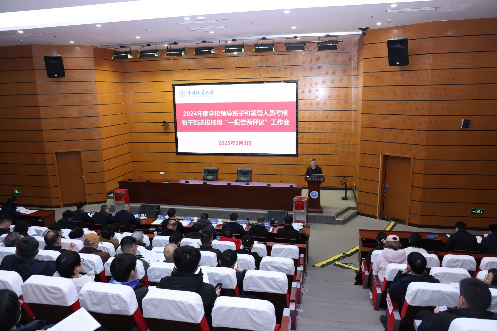 地大新聞網訊(通訊員 郭倩 吳妍 攝影 焦思勤 李銳欣 楊小櫻)3月3日,2024年度學校領導班子和領導人員考核及干部選拔任用“一報告兩評議”工作會議在南望山校區召開。全體校領導,黨委常委,校長助理,管理服務機構和教學科研單位全體中層干部,直屬單位主要負責人,“兩代表一委員”代表、民主黨派及無黨派人士代表、離退休教職工代表、教師代表及學生代表參加會議。校長李建威主持會議。