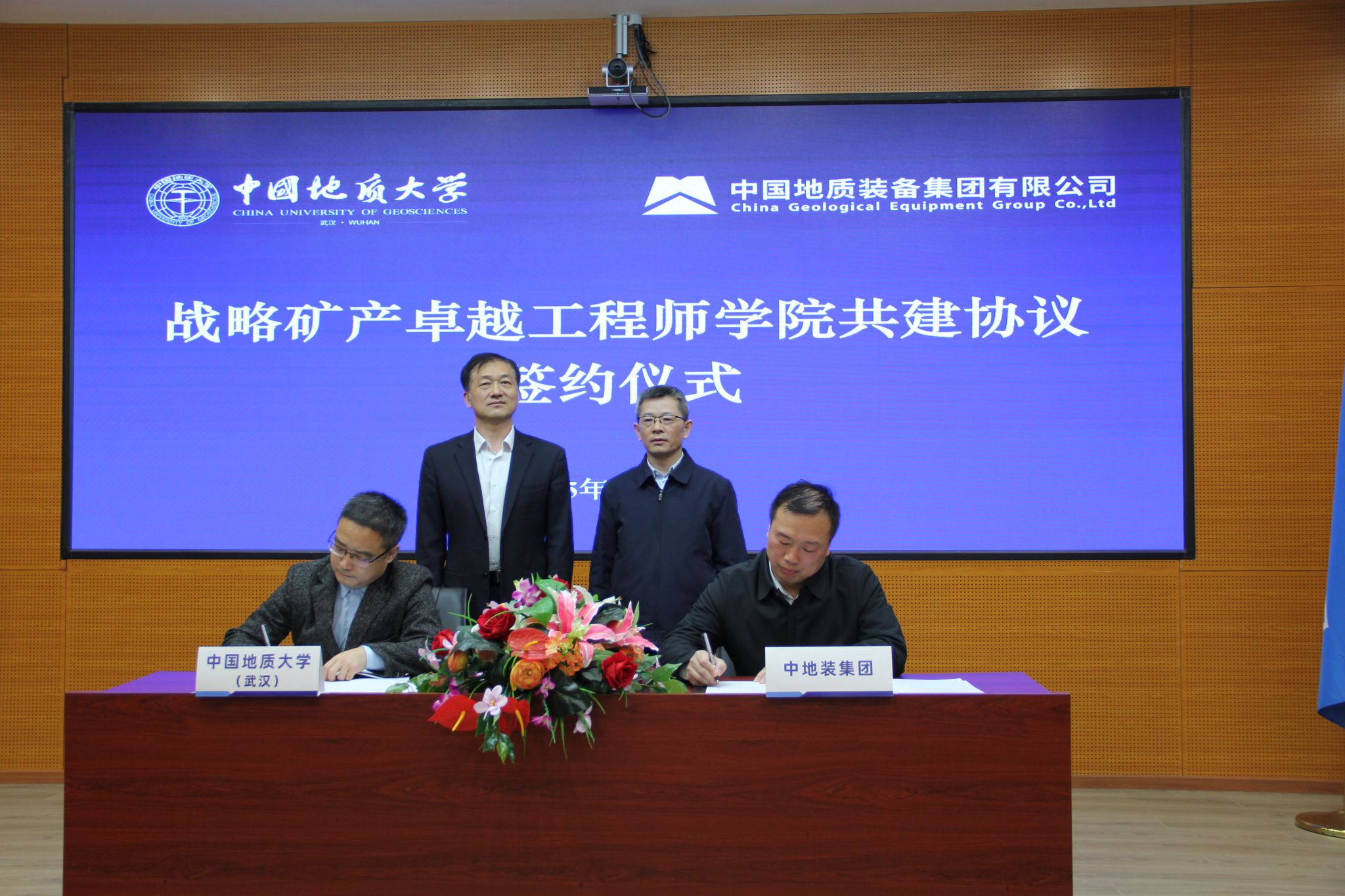 地大新聞網訊 3月30日,我校與中國地質裝備集團有限公司(以下簡稱“中地裝集團”)在北京舉行戰略礦產卓越工程師學院共建協議簽約儀式。中地裝集團黨委書記、董事長權良軍,黨委副書記、總經理劉海濤,副總經理高申友、歷娜;我校校長李建威、副校長王力哲參加簽約儀式。