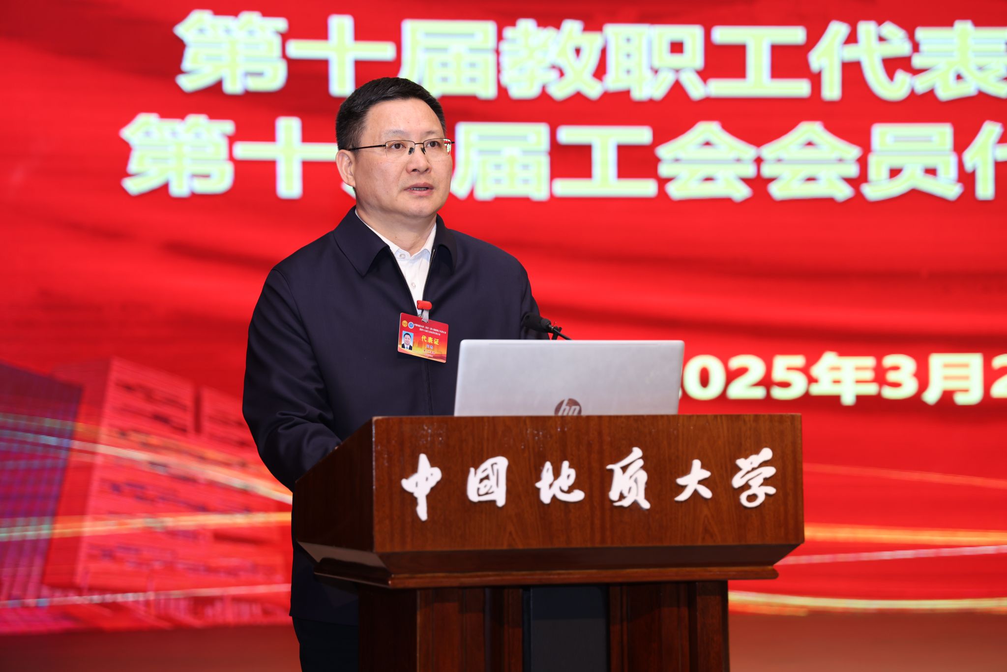 校黨委書記劉杰致閉幕辭。他表示,各位代表認真審議各項工作報告,深入討論事關學校改革發展的重要問題,提出了許多具有建設性的意見和建議,呈現出共謀、共建、共享的良好氛圍。他強調,對標黨中央2035年建成教育強國這一目標,學校必須加快建成世界重要的地學教育中心、人才中心和創新高地,力爭2035年邁入地球科學領域世界一流大學行列。