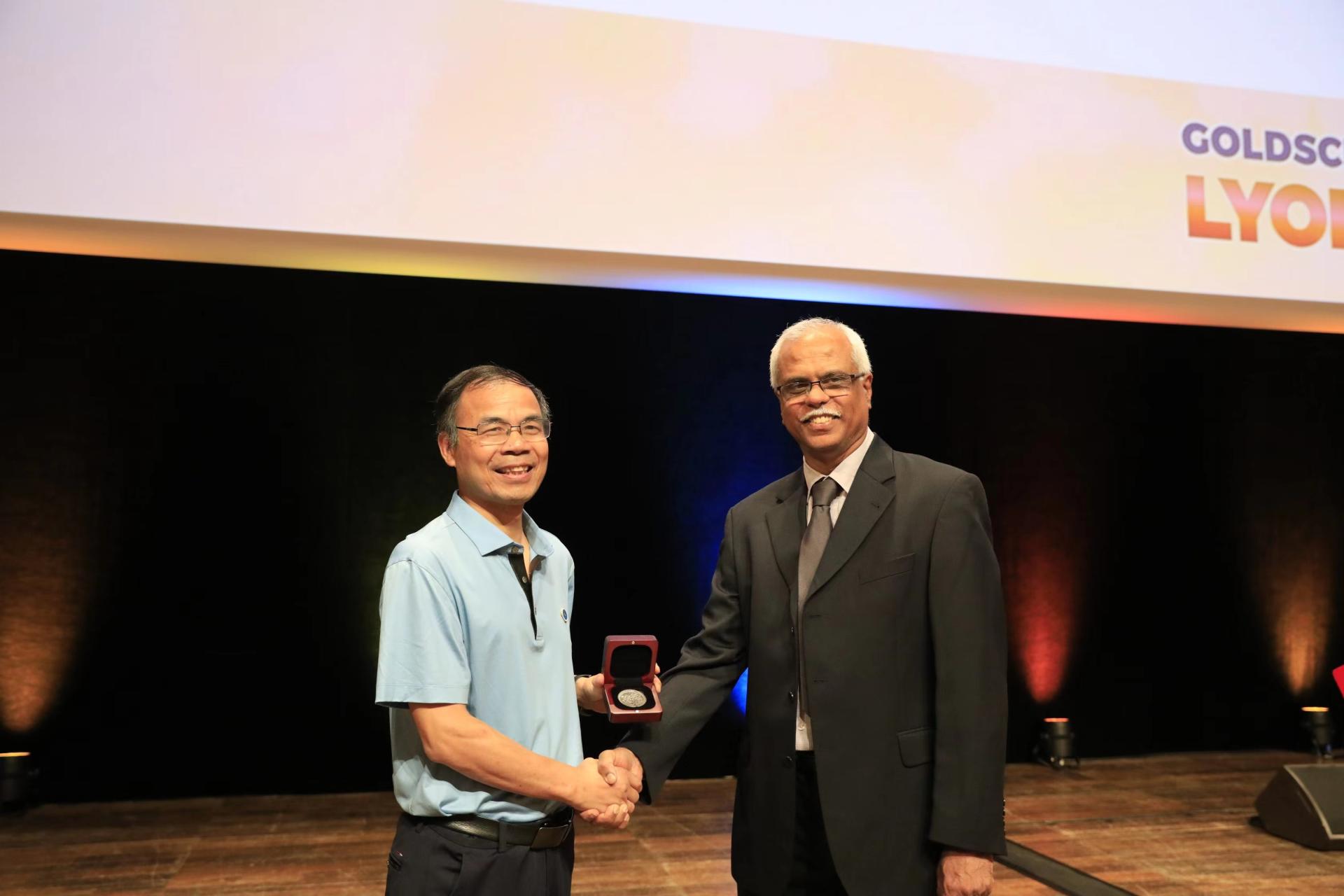 國際地球化學學會主席Sumit Chakraborty教授向謝樹成院士頒發獎章