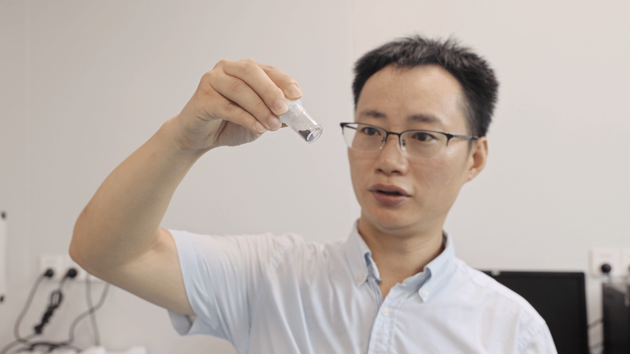 汪在聰展示嫦娥六號取回的月球背面月壤樣品