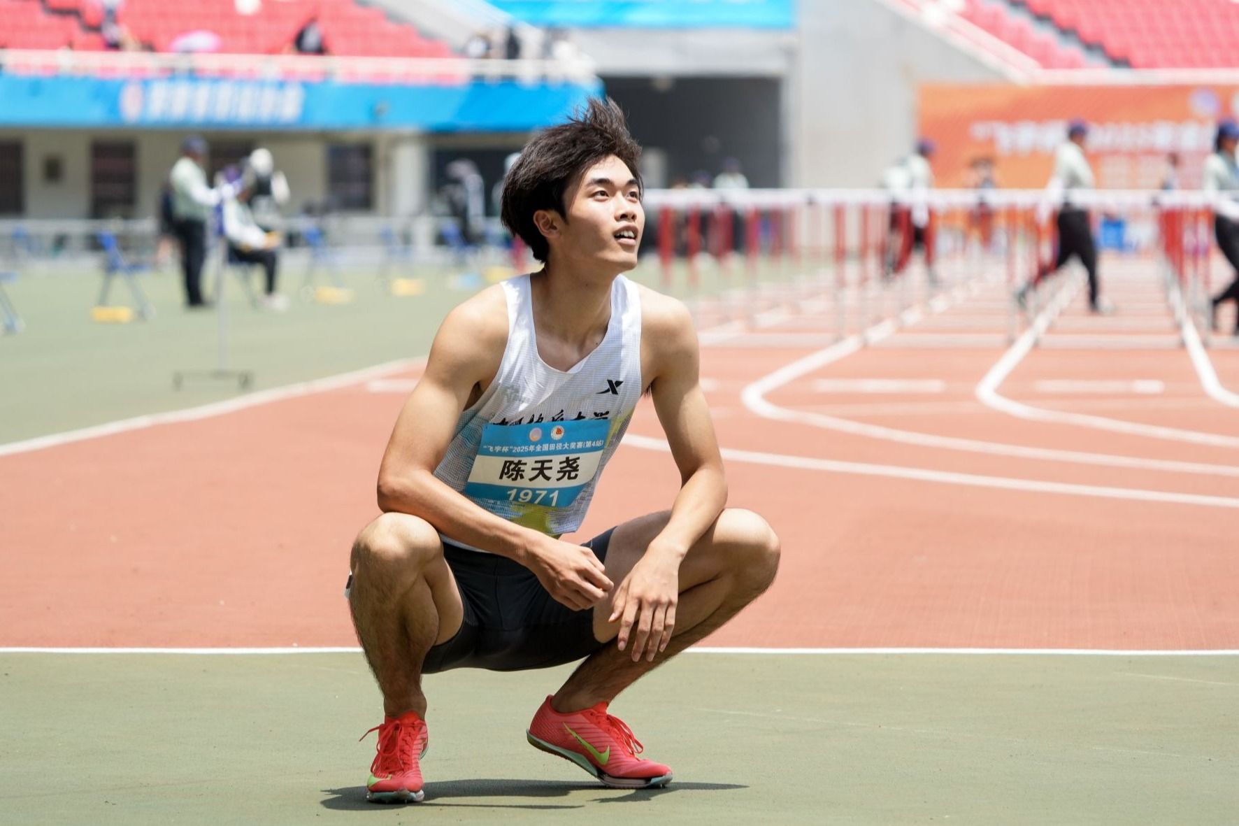 陳天堯,2005年9月出生于湖南湘潭,現就讀于公共管理學院行政管理專業,主項男子110米欄。曾獲得2024年湖北省大學生田徑運動會男子110米欄冠軍、2025年全國田徑大獎賽第四站男子110米欄亞軍。令人欣喜的是,在一年半的時間里,陳天堯實現了運動等級由國家二級運動員到國際級運動健將的飛躍。