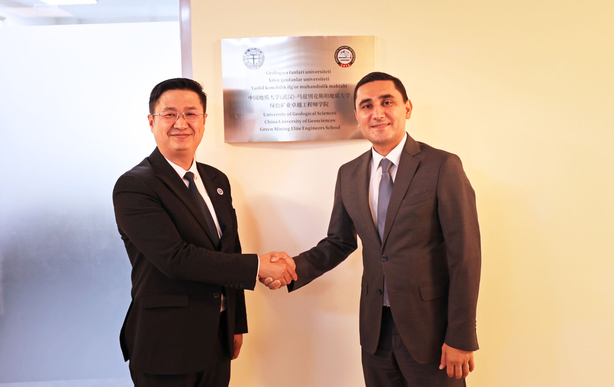 夏帆、卡迪爾霍賈耶夫共同為“中國地質(zhì)大學(武漢)-烏茲別克斯坦地質(zhì)大學綠色礦業(yè)卓越工程師學院”揭牌