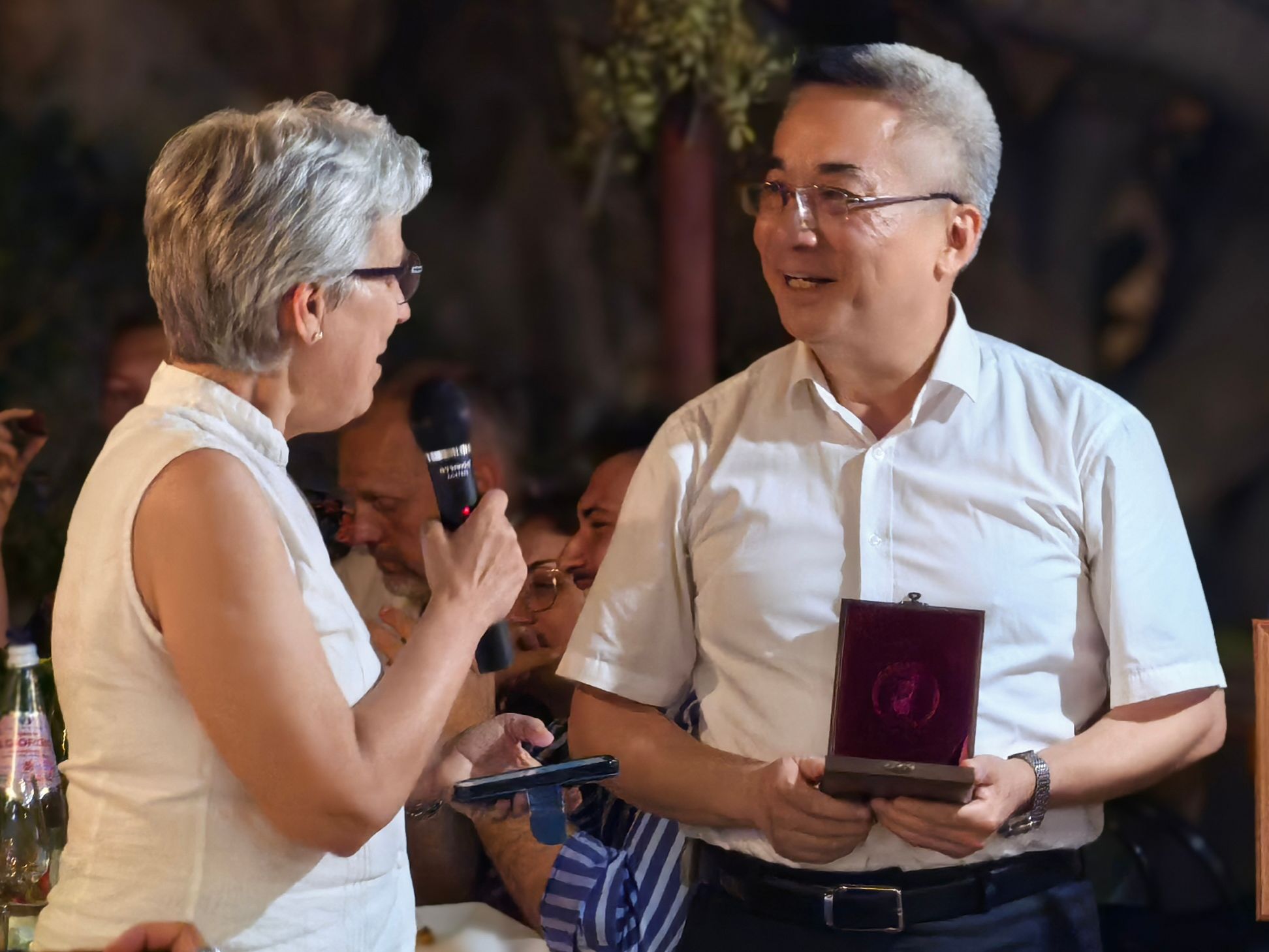 國際地球化學協會主席Elisa Sacchi向王焰新院士頒發獎章及證書