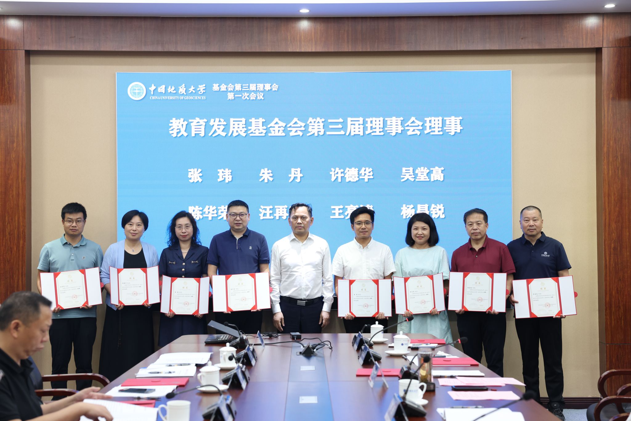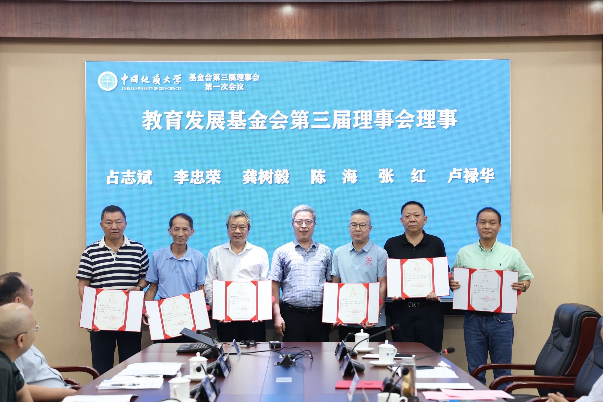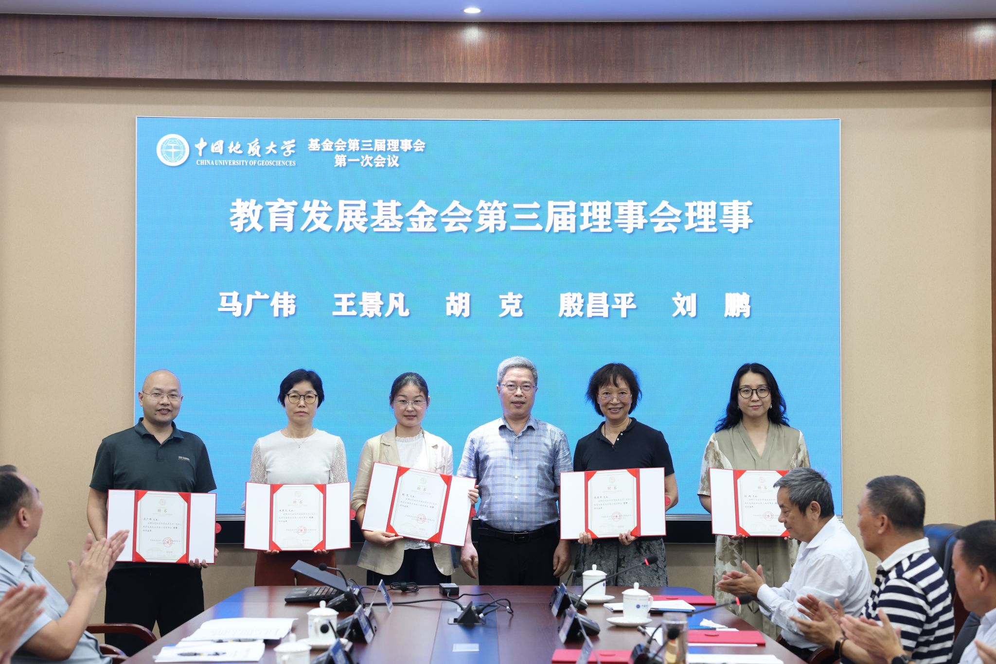 地大新聞網訊 (通訊員 袁晗 袁瀟 攝影 楊小櫻)6月20日,我校教育發展基金會(以下簡稱“基金會”)換屆大會暨第三屆理事會第一次會議舉行。校黨委書記劉杰、黨委副書記王林清,原副校長、資源學院教授王華,基金會第二屆、第三屆理事會成員、基金會監事參加會議。王林清主持會議。