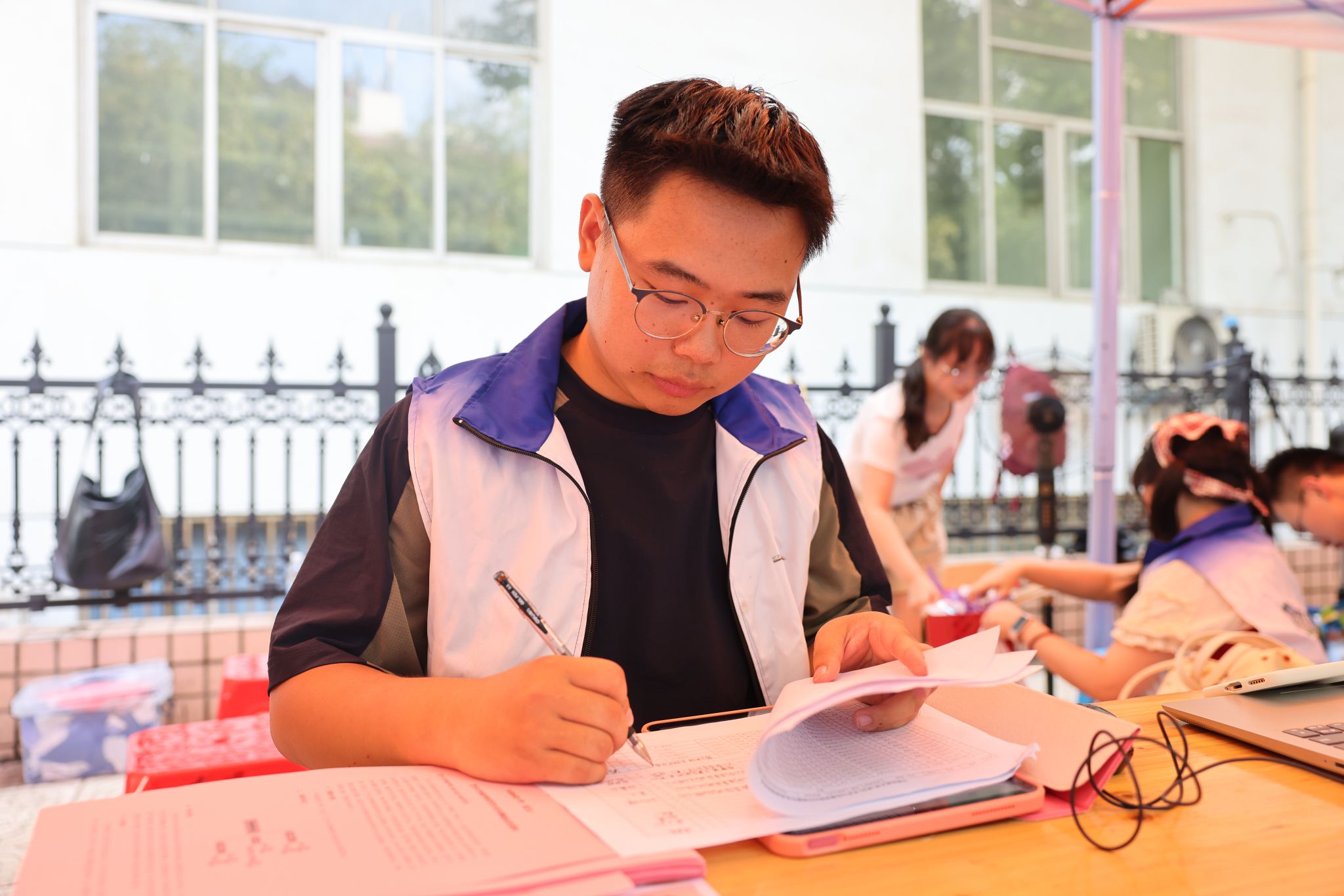 藝術與傳媒學院交互設計專業的研二學生萬子炎,負責數據錄入等流程的新生報到工作。因為熱愛攝影,去年還是研一新生的他也曾在迎新現場負責拍攝工作。“雖然身份轉變了,但不變的是志愿服務的初心??吹叫峦瑢W懷著愉悅的心情來報到,校園也增添了更多的活力,工作也更加有干勁。”