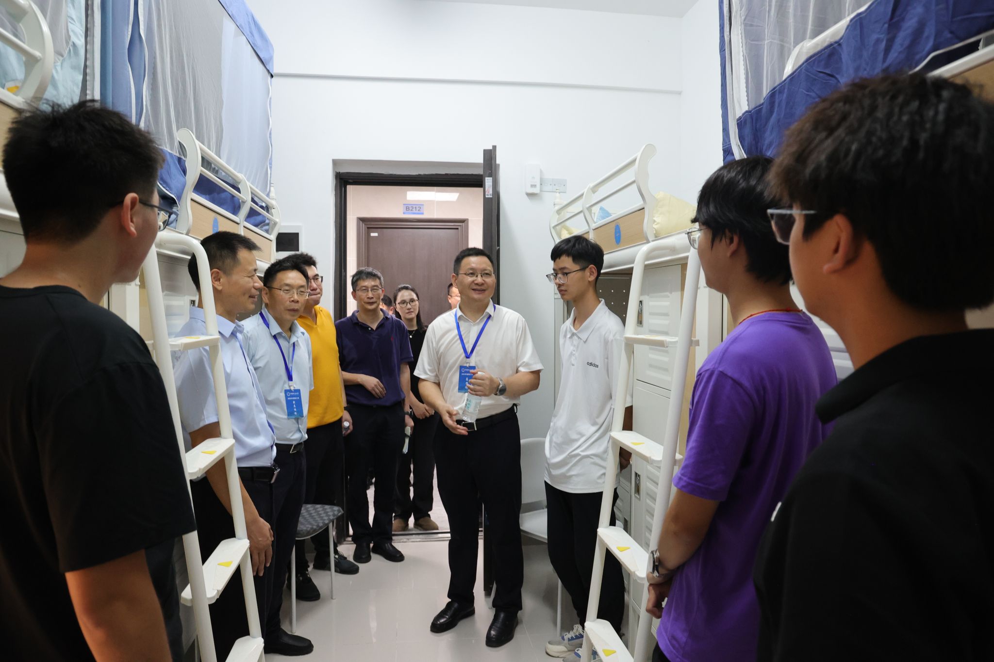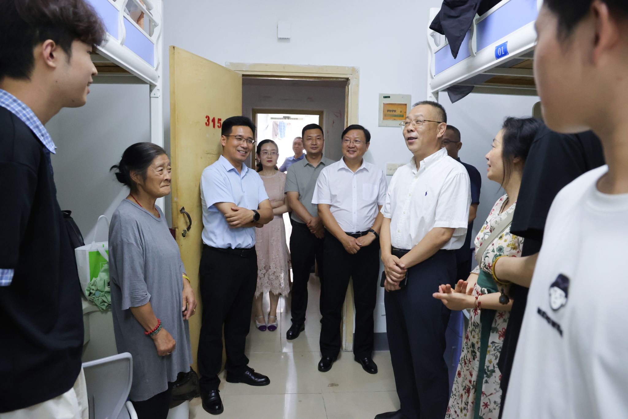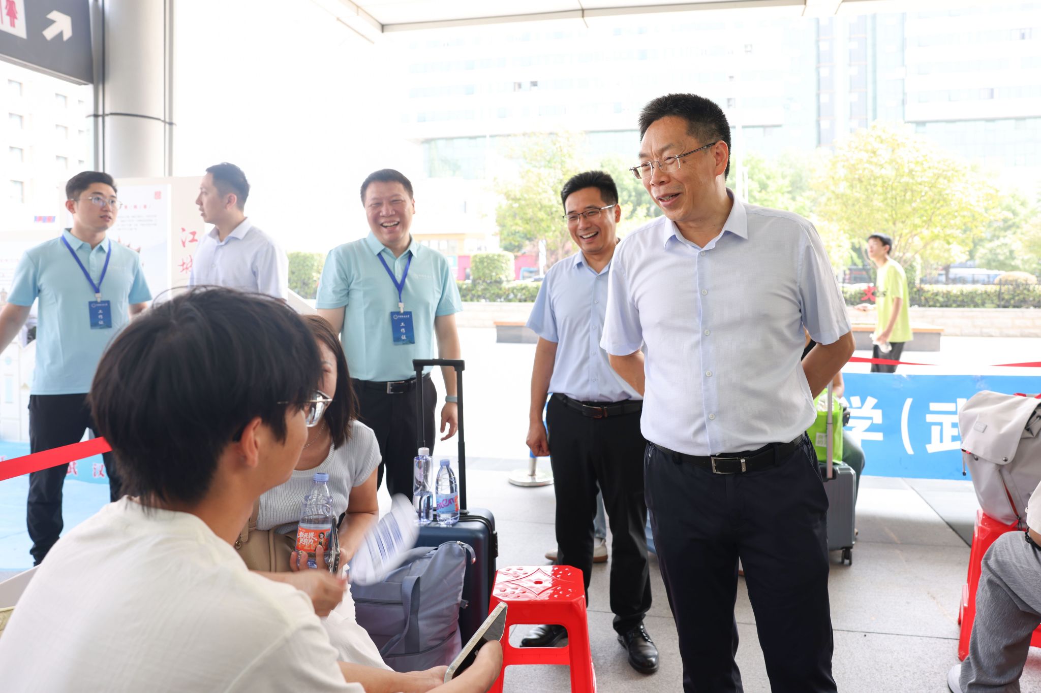 9月1日下午、9月2日,校領導劉杰、李建威、王林清、唐忠陽、王甫、王文起,黨委常委、組織部部長陳文武,校長助理蔣少涌,先后前往南望山校區和未來城校區,實地查看迎新工作進展,并走進新生宿舍,與學生和家長進行交流。他們關切地詢問同學們飲食是否習慣、住宿是否舒適,并仔細了解大家入學后的適應情況和個人需求。他們代表學校歡迎新生們,表示學校將全力保障同學們在校期間的學習與生活,為大家創造良好的成長環境。同時他們也勉勵新生盡快融入校園,珍惜大學時光,學好專業、鍛煉能力,在地大這片沃土上勇敢追夢、踏實成長。