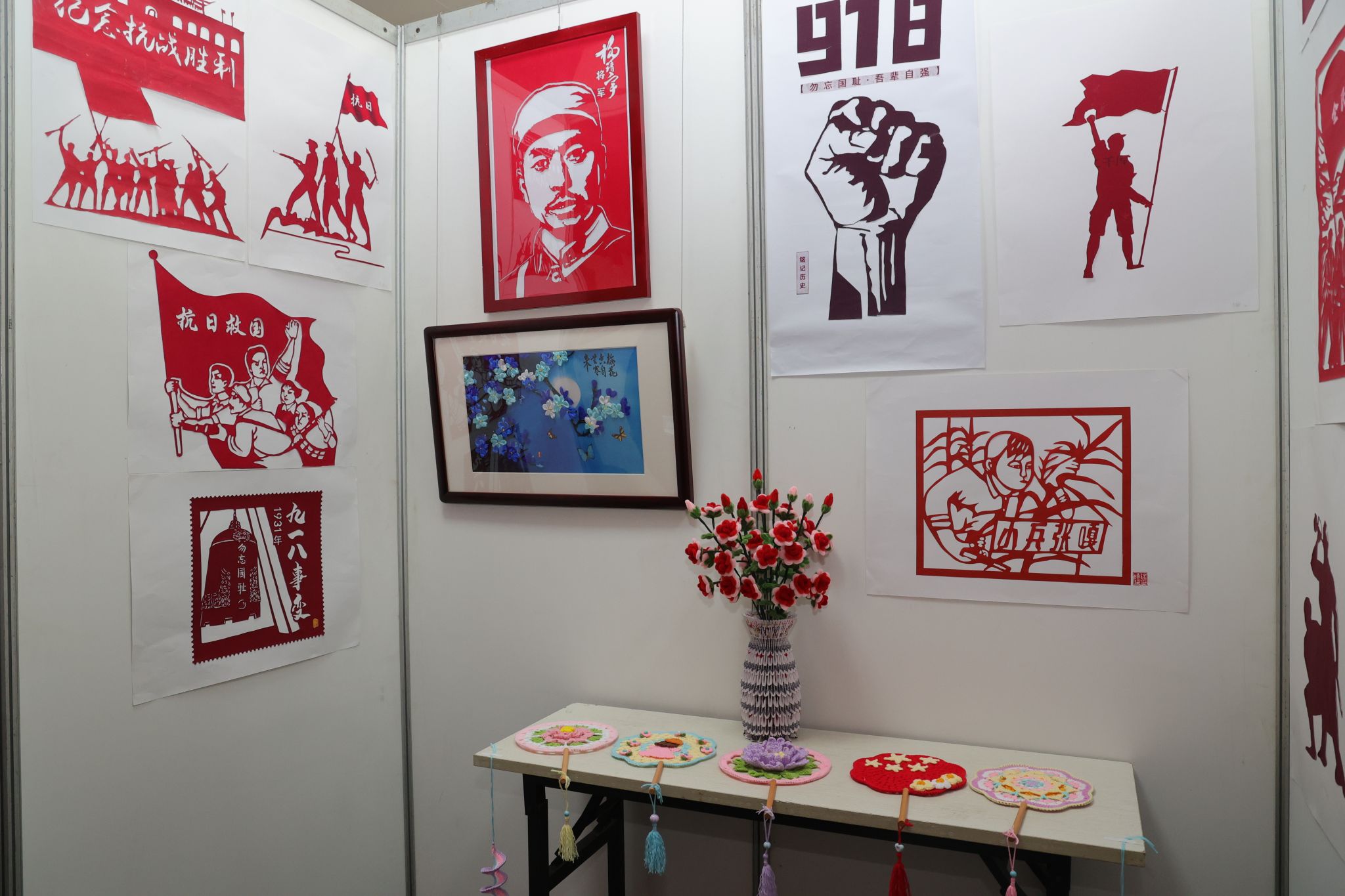 本次展覽共匯集了146件詩(shī)詞、書畫、攝影、手工藝作品,這些作品以筆為戎、以墨寄情,回望烽火歲月,緬懷革命先烈,用創(chuàng)作表達(dá)了對(duì)和平的珍惜和對(duì)未來(lái)的展望。