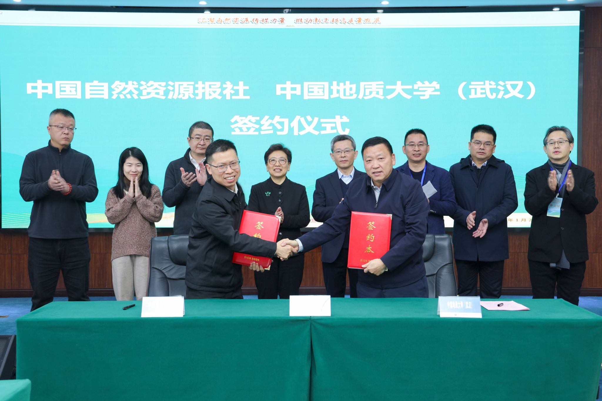 中國地質大學(武漢)與中國自然資源報社簽署戰略合作協議,湯小俊、王林清代表雙方簽約。